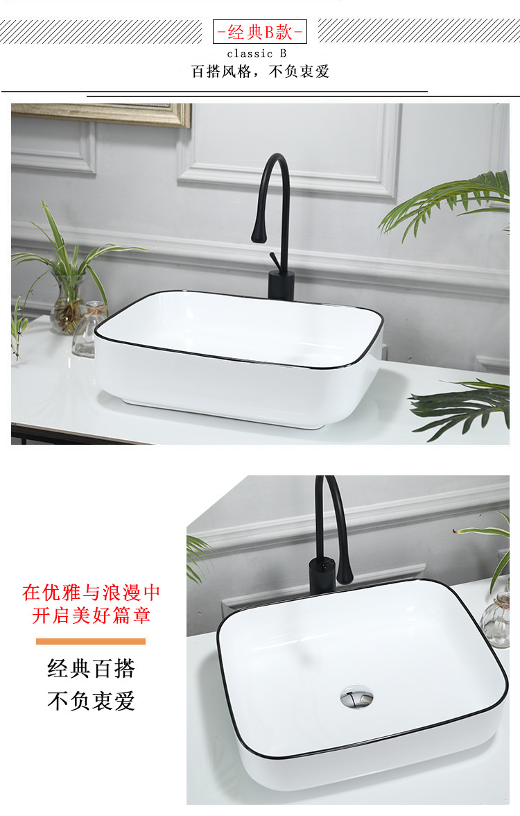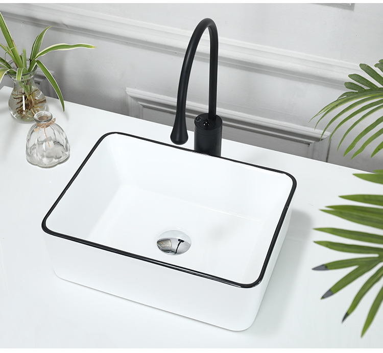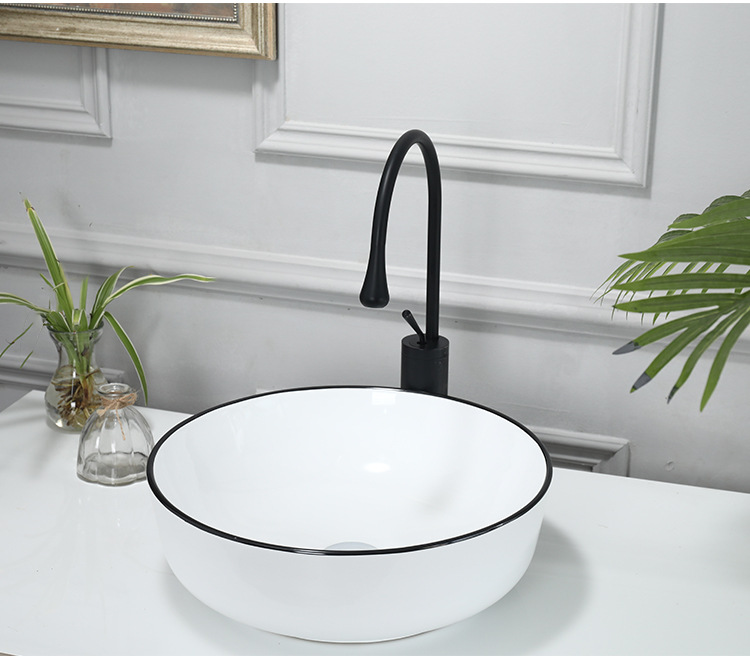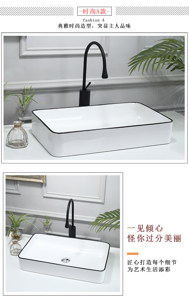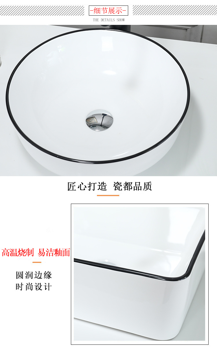 材质 陶瓷 货号 TLB0001 台面类型 一体陶瓷盆类别 单盆龙头开孔 单孔 风格 现代简约 花色 黑边 规格 黑边A款单盆,黑边B款单盆,黑边C款单