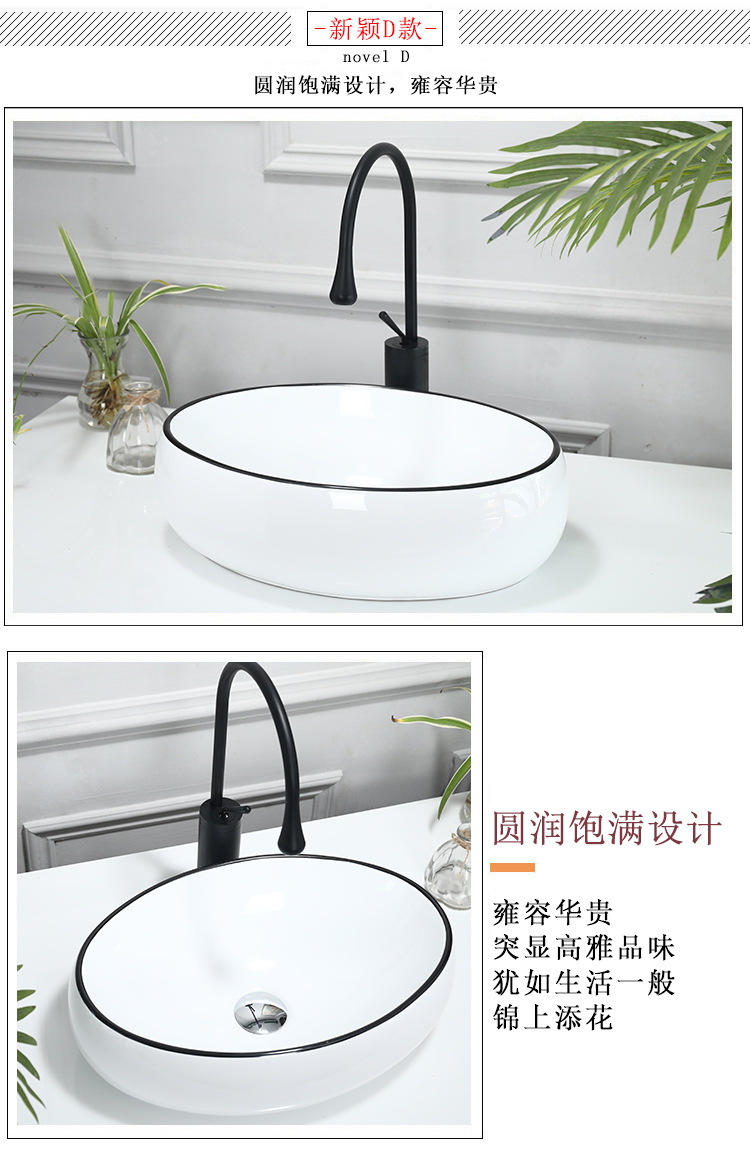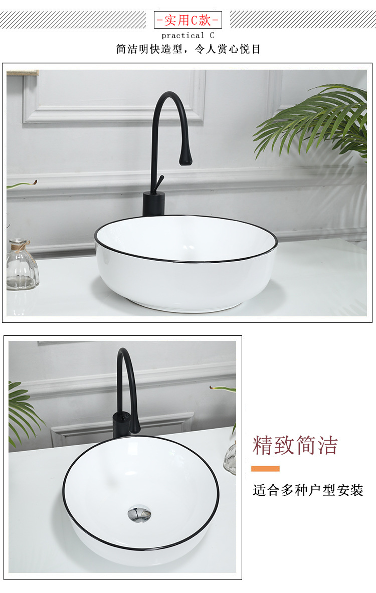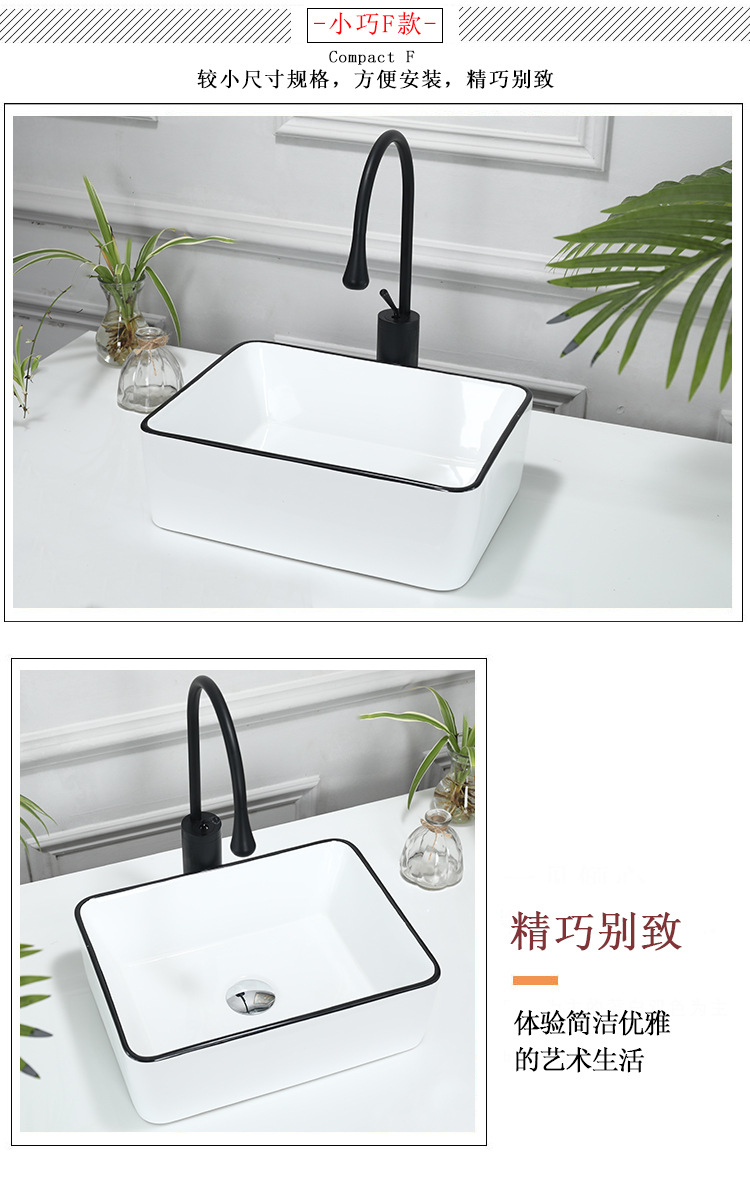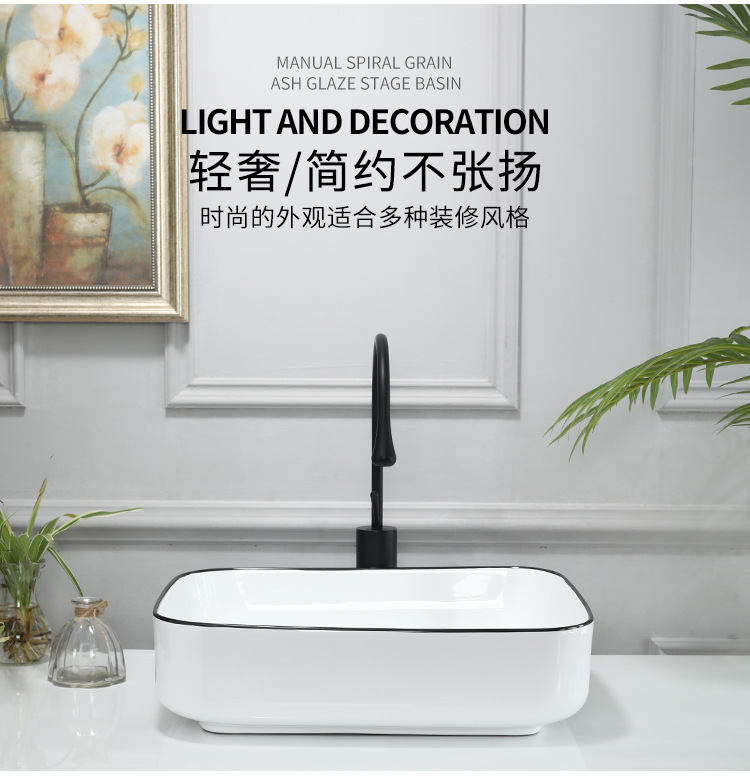 材质 陶瓷 货号 TLB0001 台面类型 一体陶瓷盆类别 单盆龙头开孔 单孔 风格 现代简约 花色 黑边 规格 黑边A款单盆,黑边B款单盆,黑边C款单