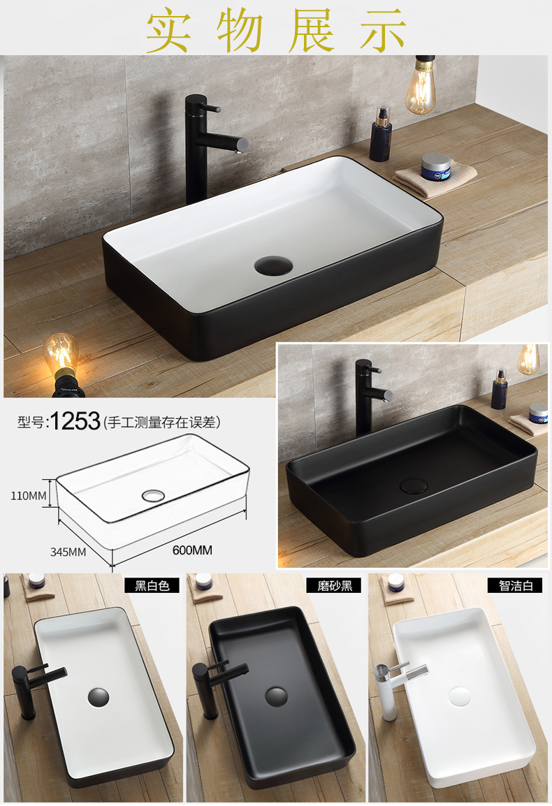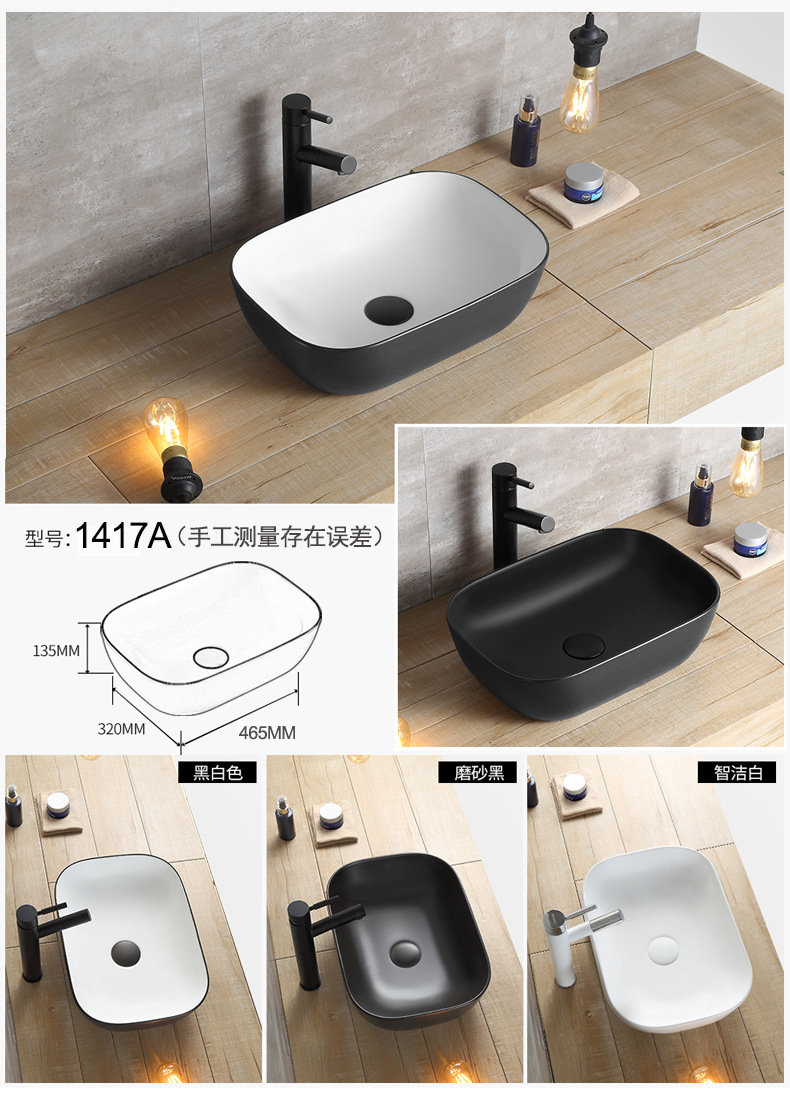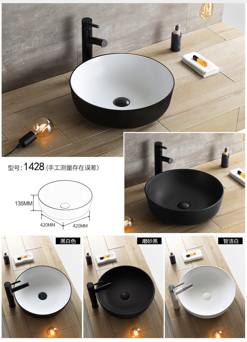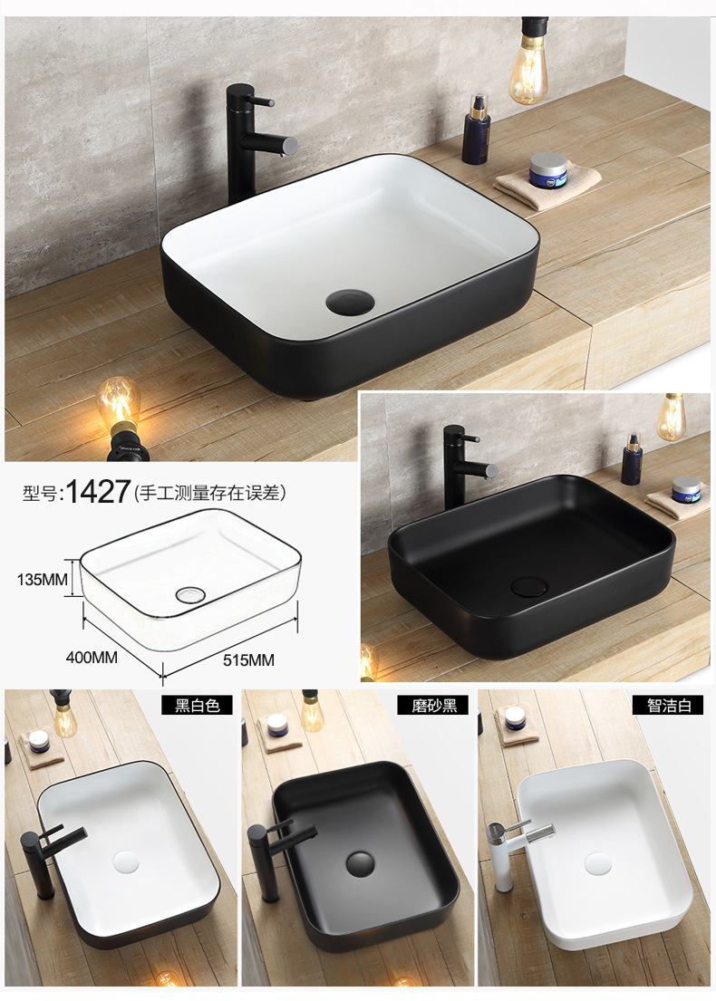 材质 陶瓷 货号 DW1427 台面类型 一体陶瓷盆 类别 单盆 龙头开孔 无孔 风格 现代北欧风 花色 纯色 规格 1253白色,1253黑白色,1253黑色,1417A白色,14
