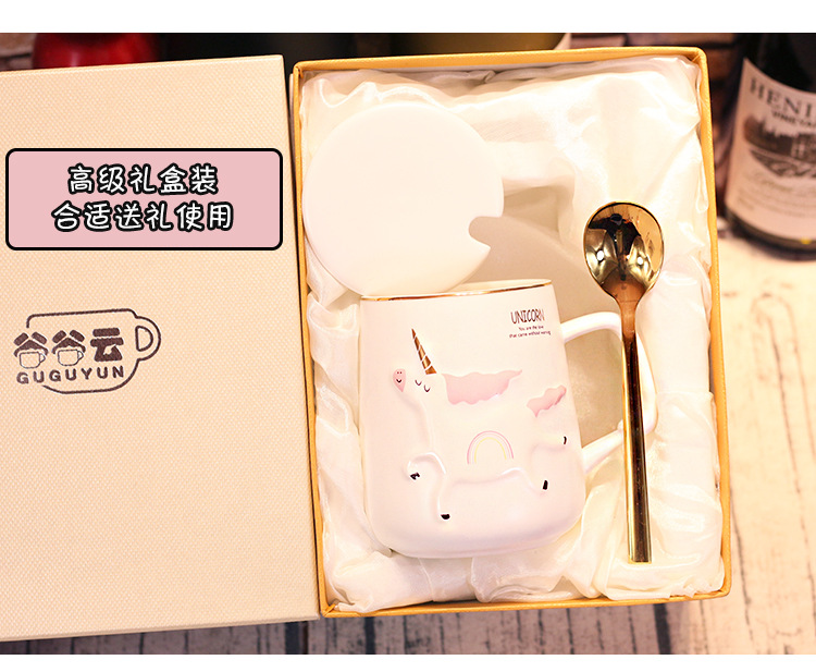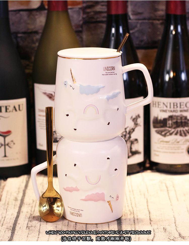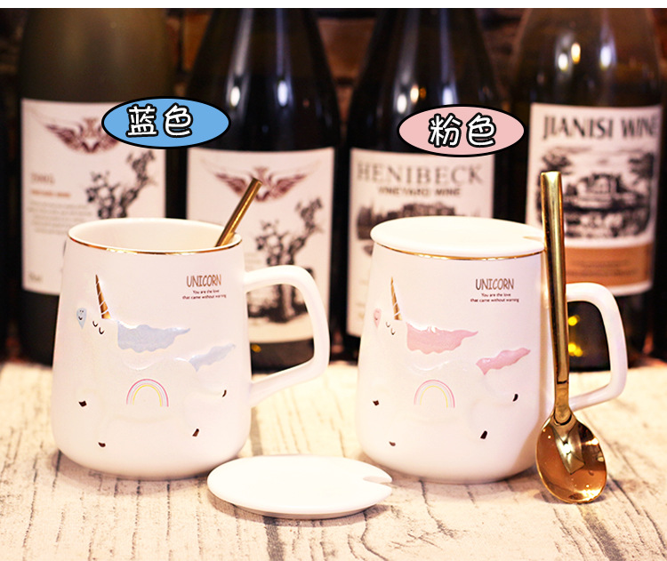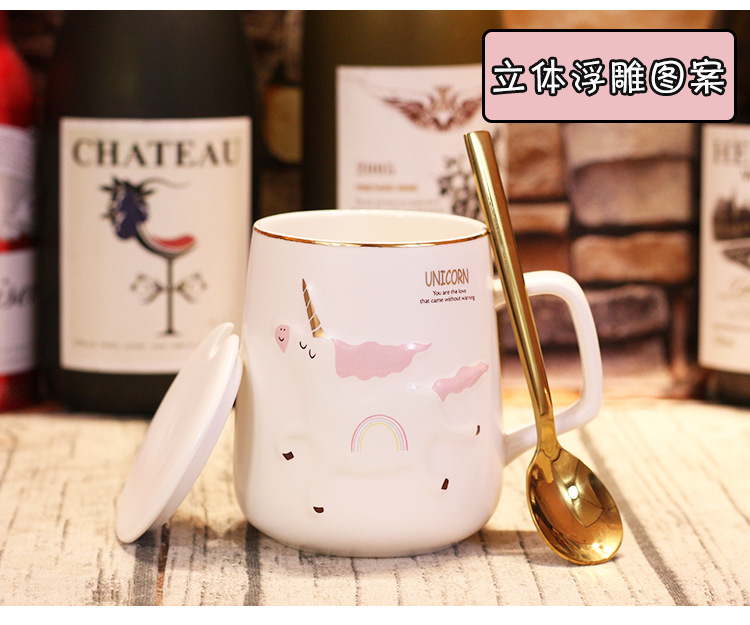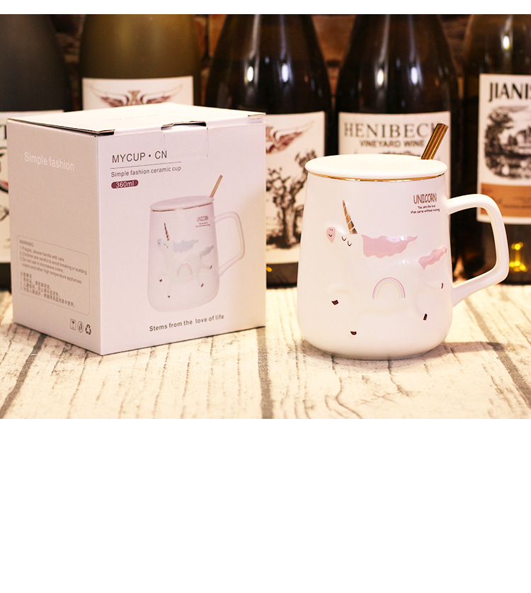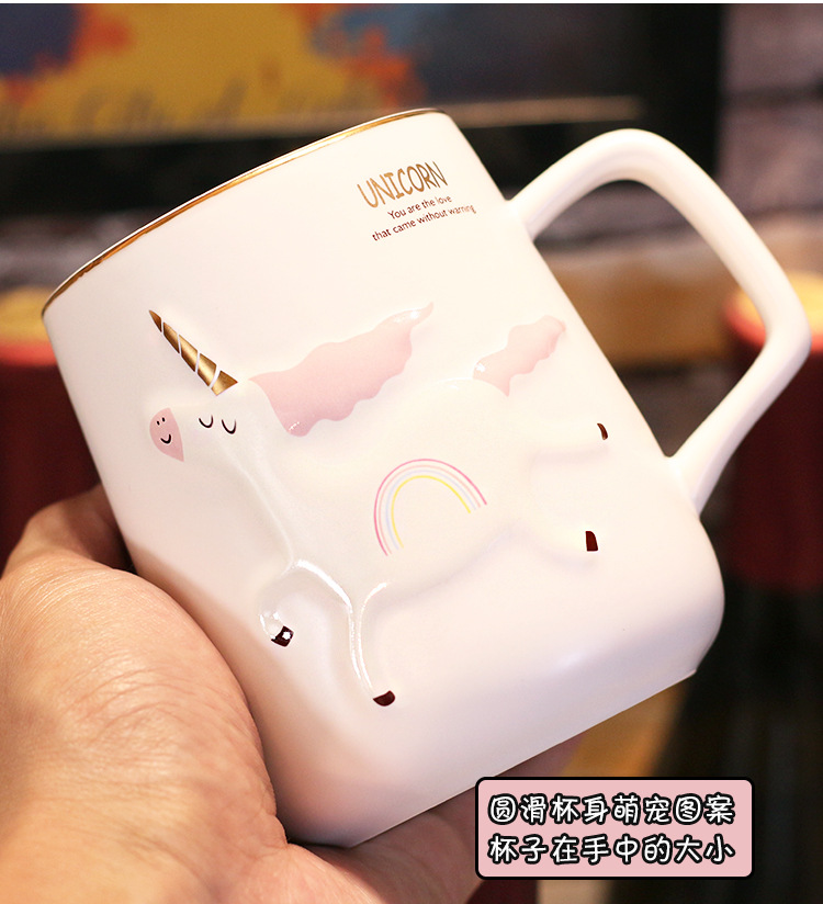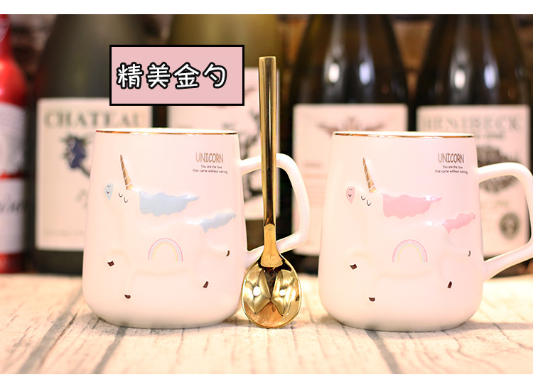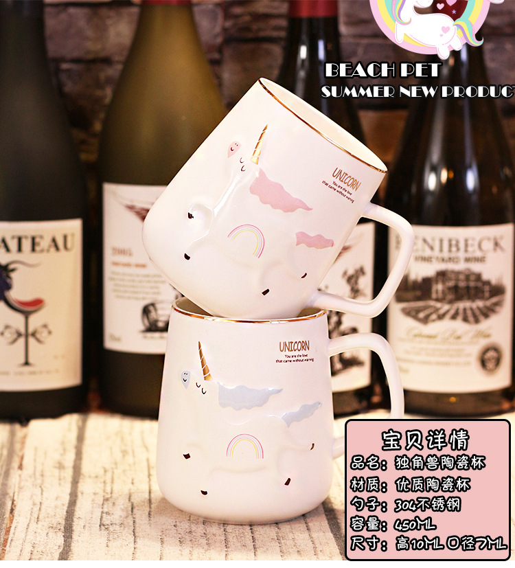 商品名称:独角兽陶瓷杯北欧风卡通带盖勺