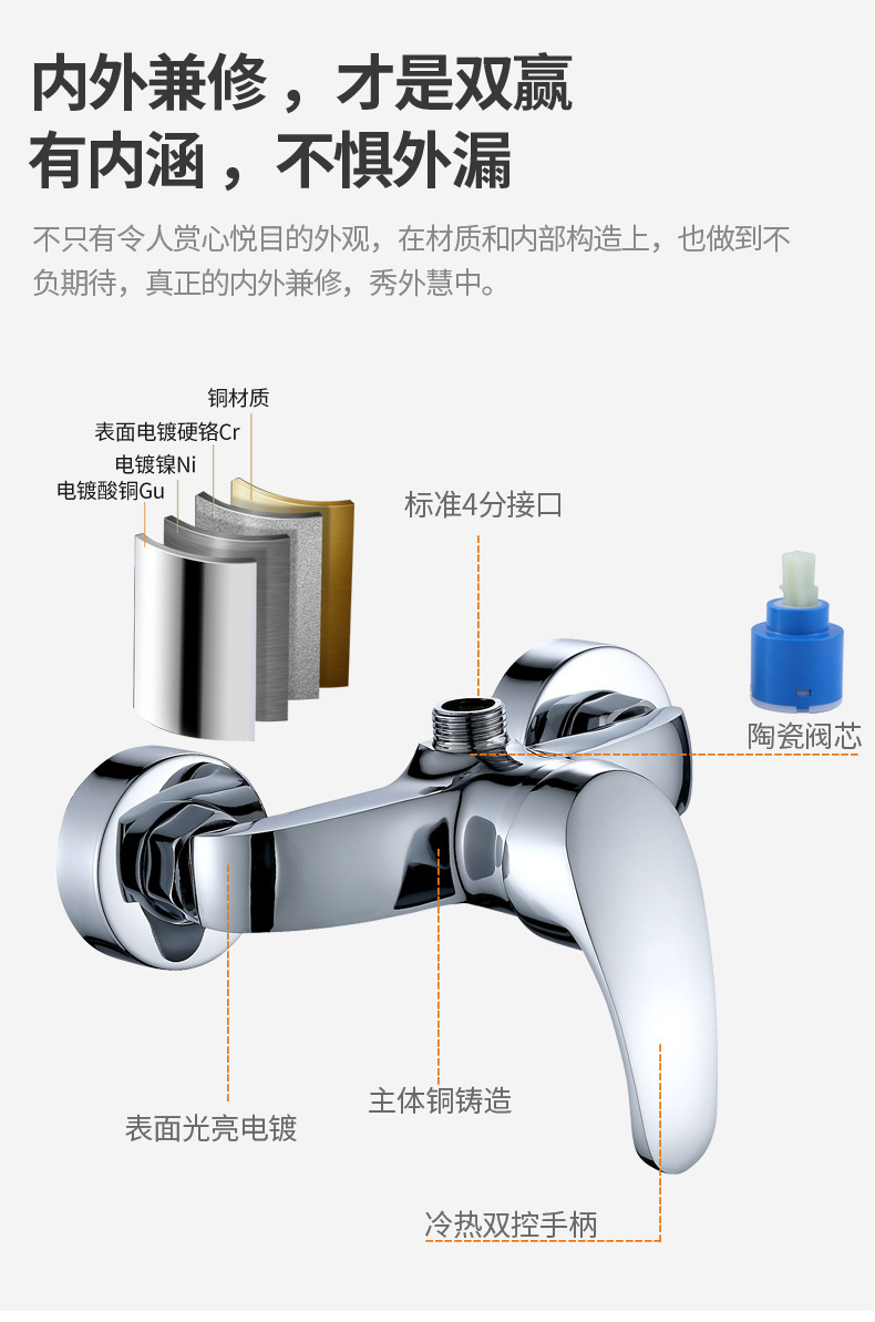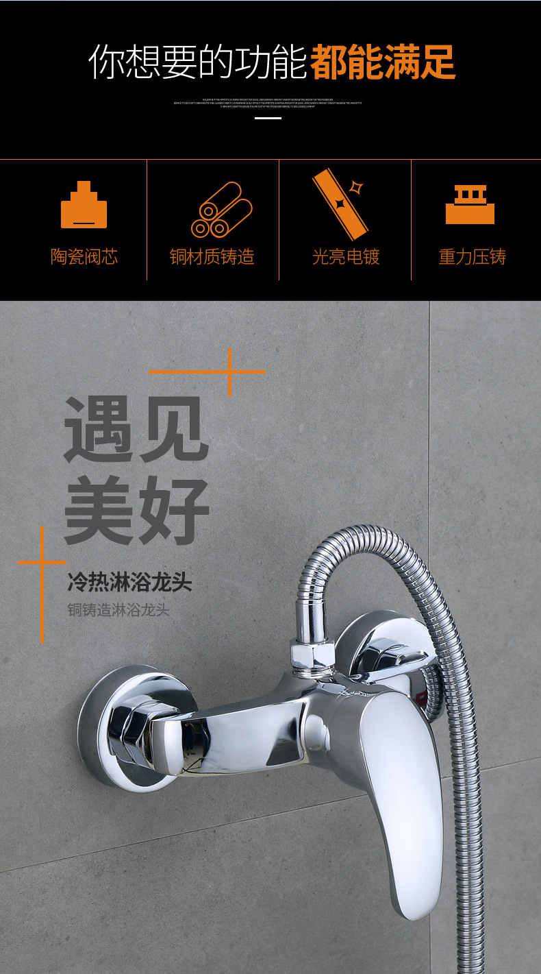 商品名称:304不锈钢淋浴水龙头黄铜暗装入墙式淋浴阀家用冷热混水阀热水器