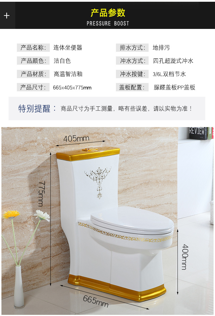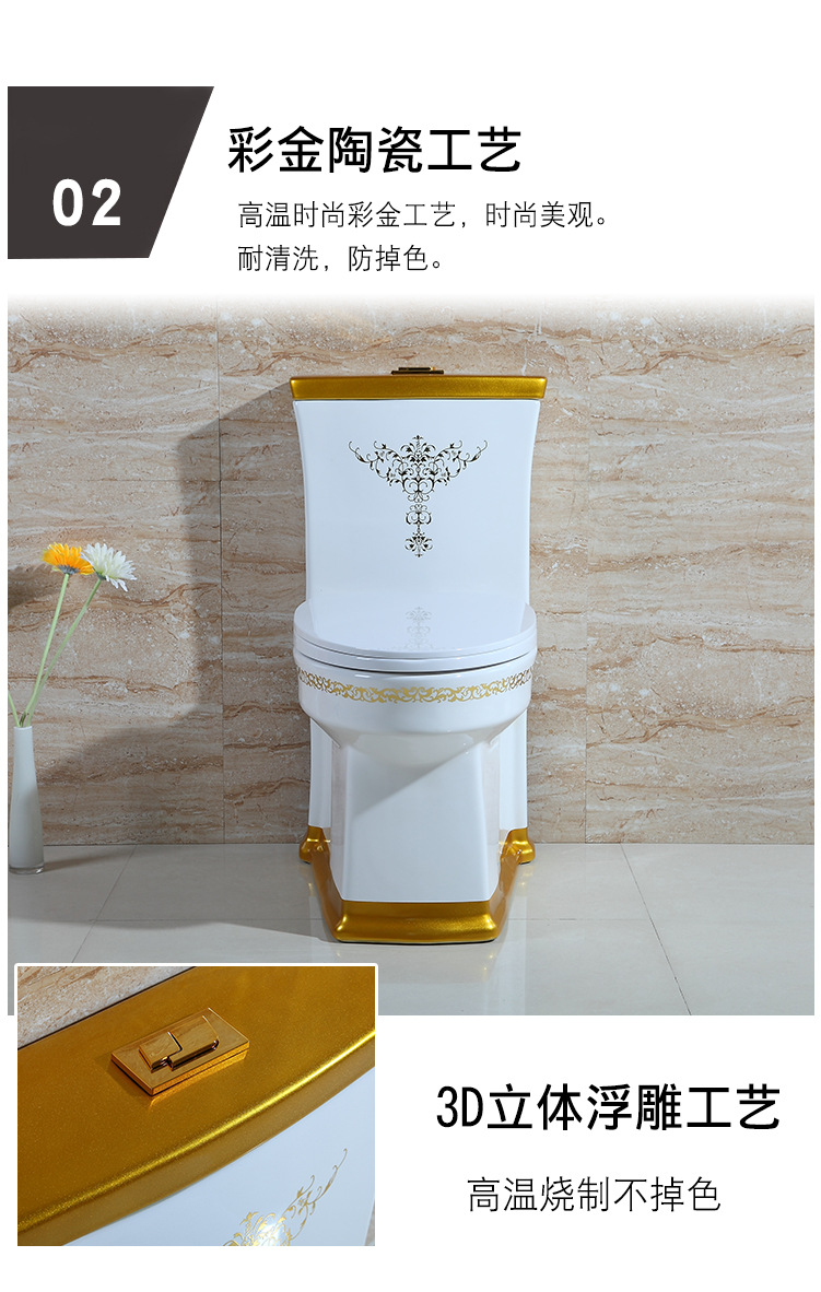 商品名称:欧式马桶彩金超旋冲洗坐便器金色彩色马桶节水彩花新款座便器