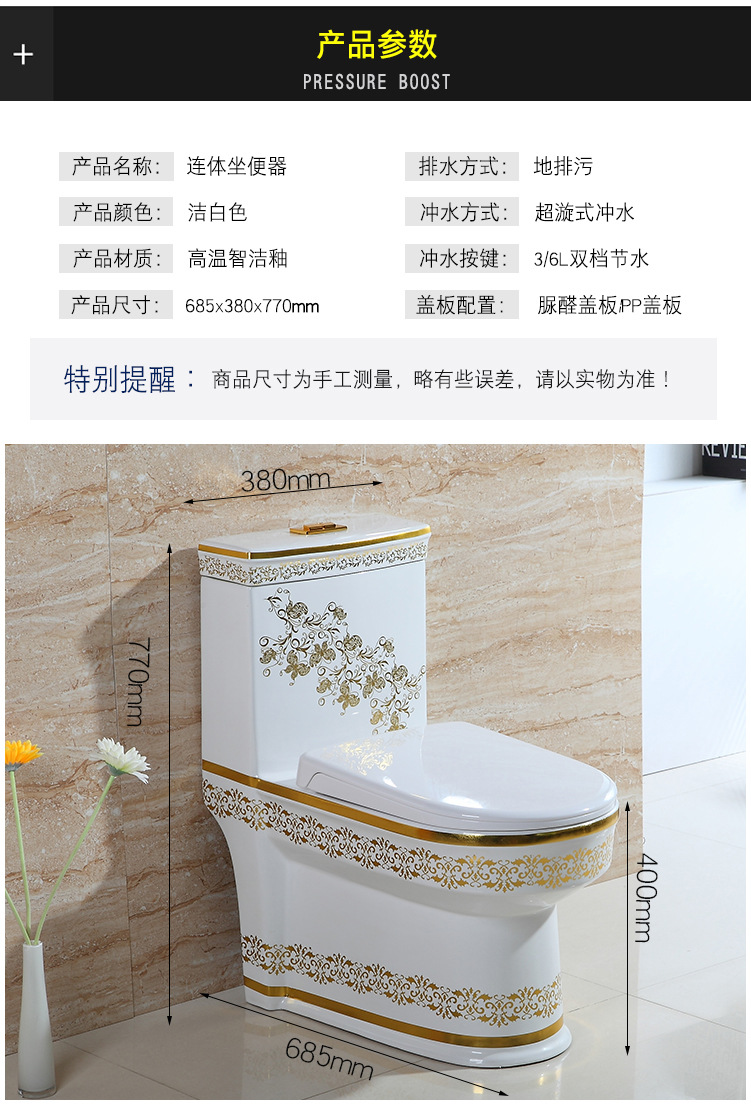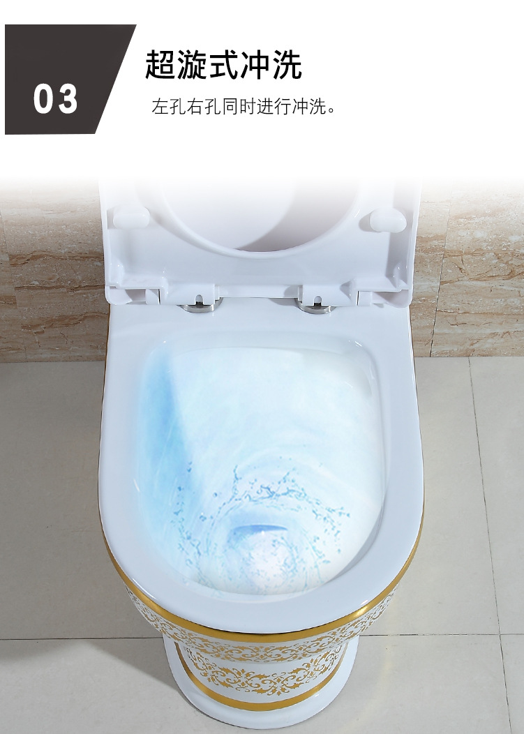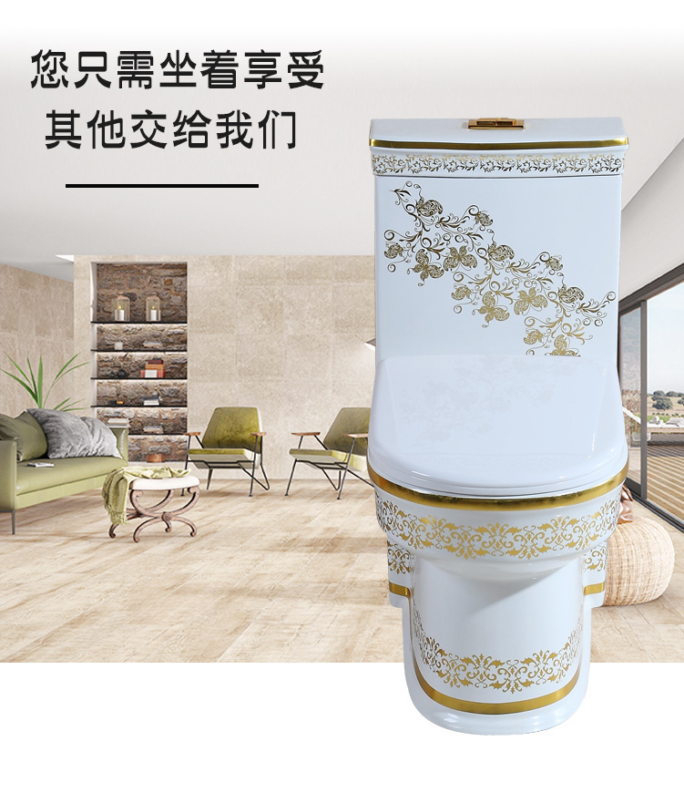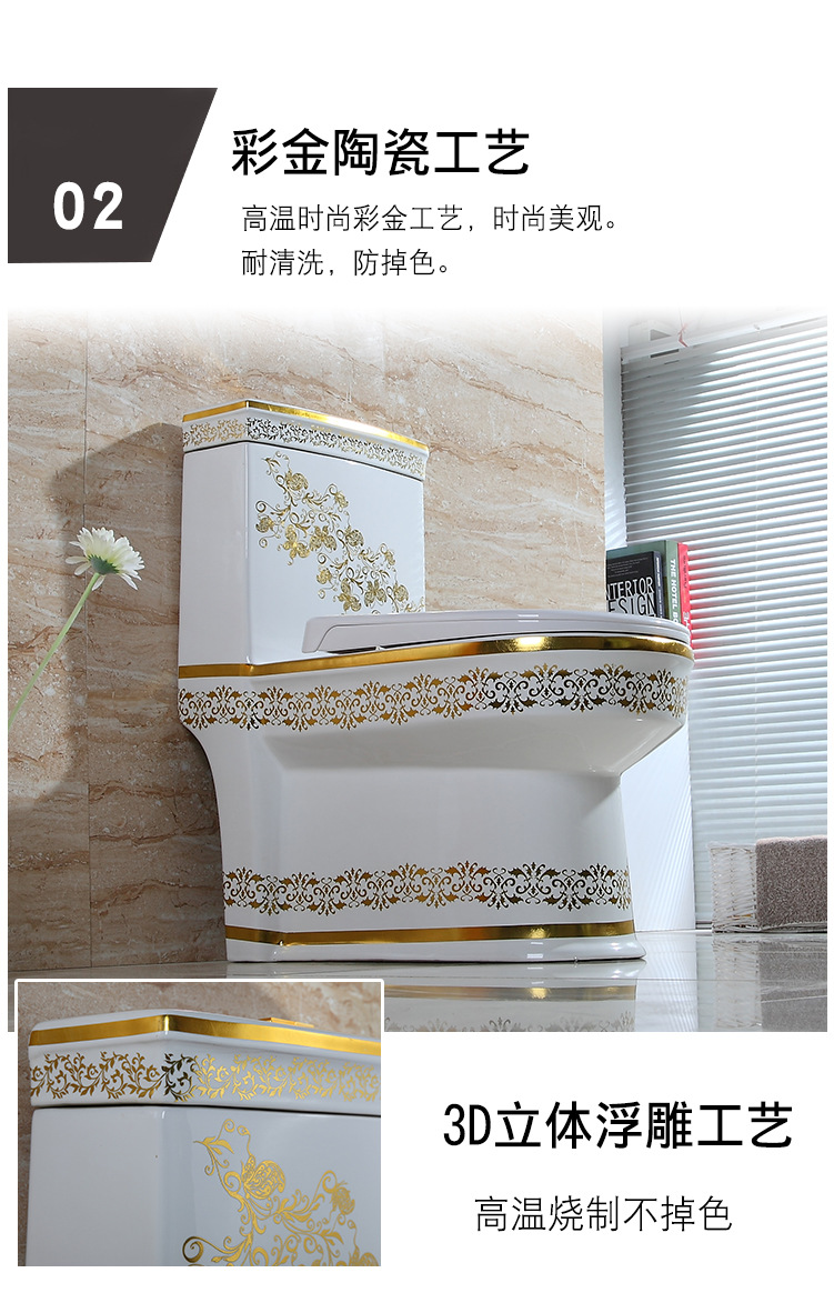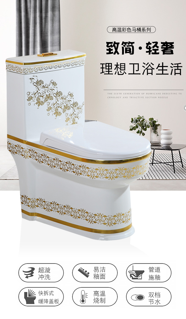 商品名称:新款欧式马桶彩金超旋冲洗坐便器金色彩色马桶节水彩花座便器