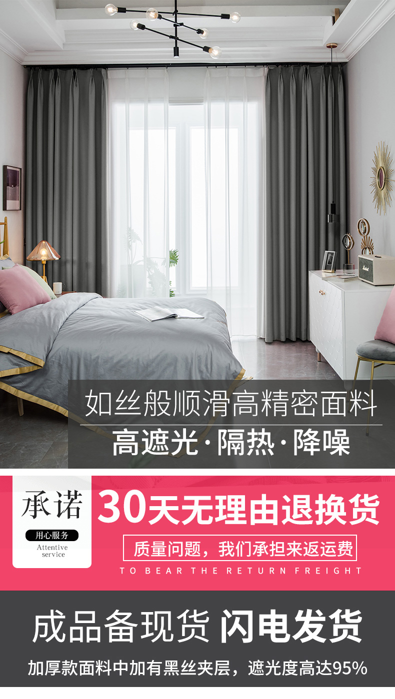商品名称:窗帘成品定制免打孔挂钩式北欧简约现代2020新款全遮光布(定金)