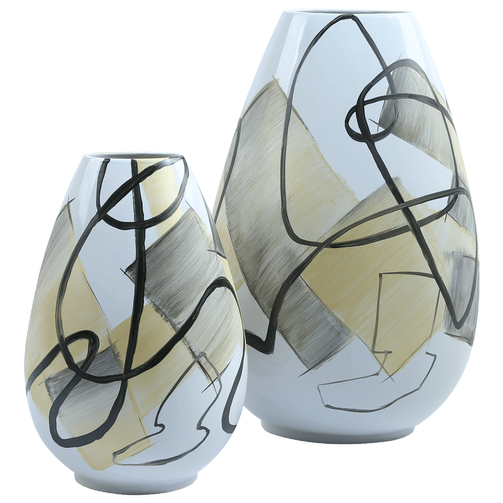 商品名称:异象饰品 手绘线条纹椭圆收口陶瓷瓶 高