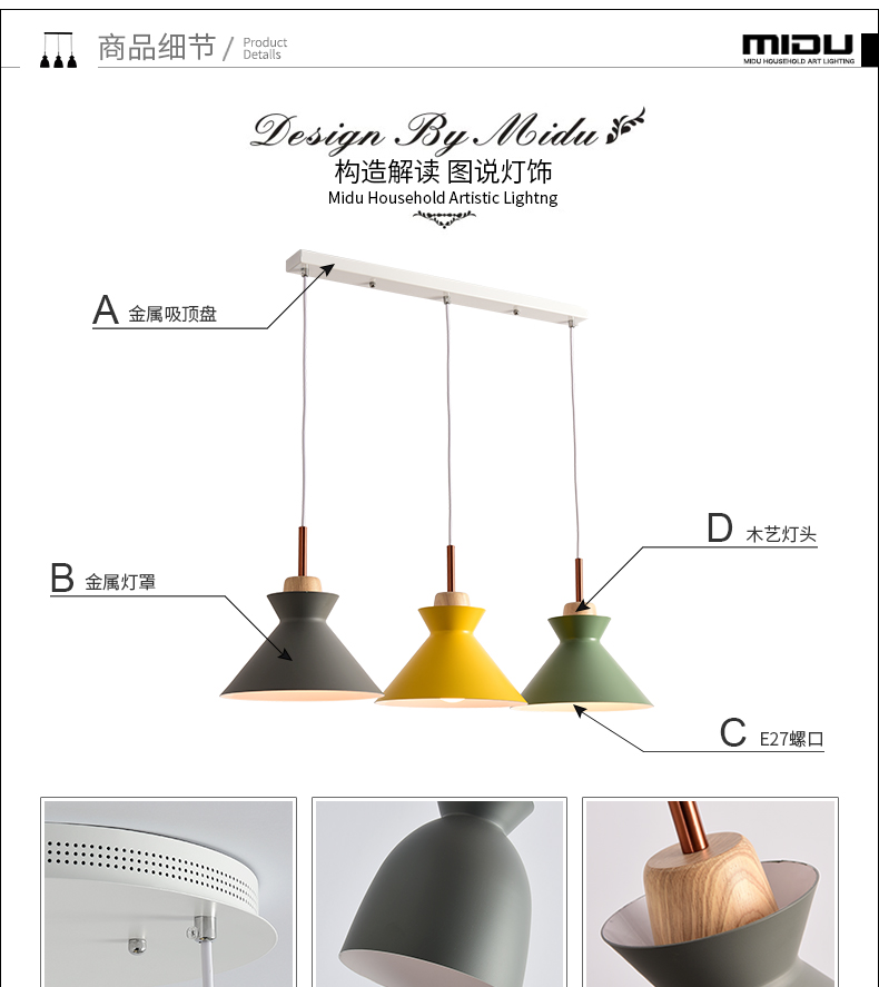 商品名称:众佰灯饰 北欧 马卡龙小吊灯 YY-6281-长杆C款
