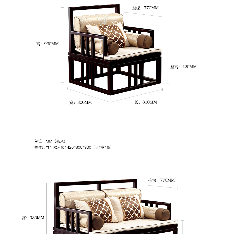 商品名称:槿漫轩家具 1+2+3组合沙发+案几 新中式 东南亚红檀木+麻布软包