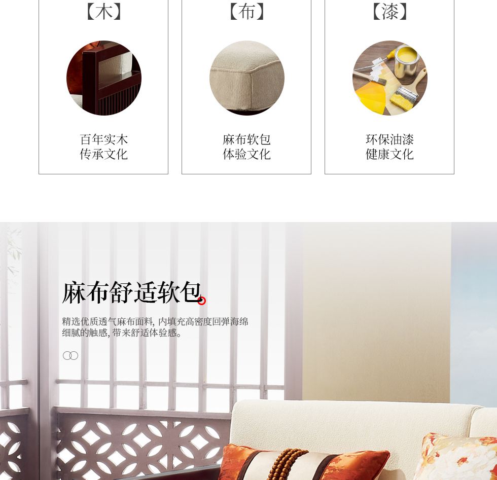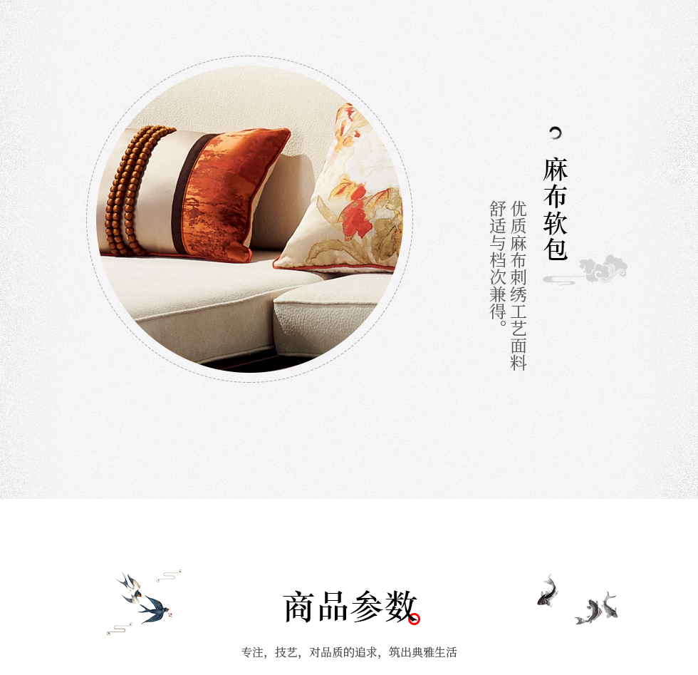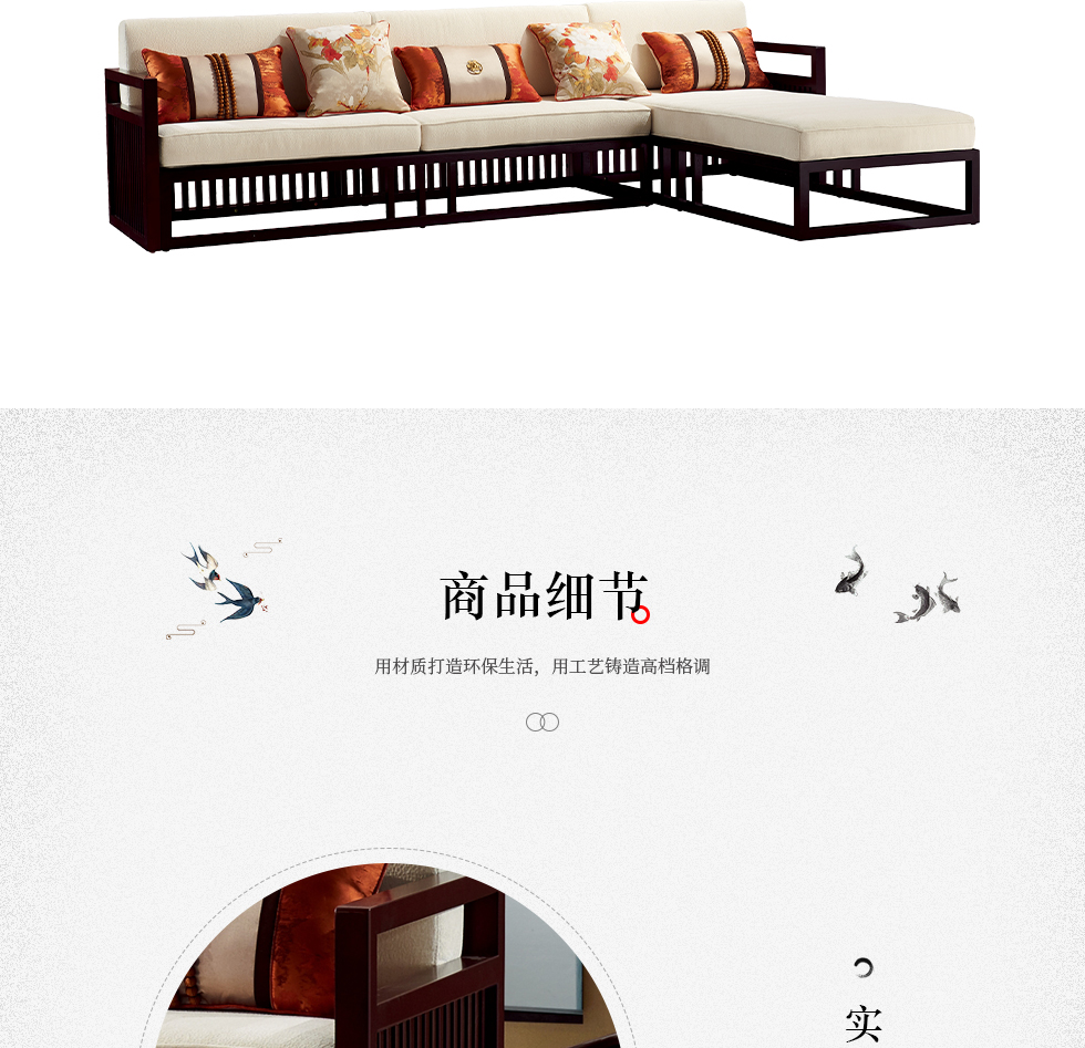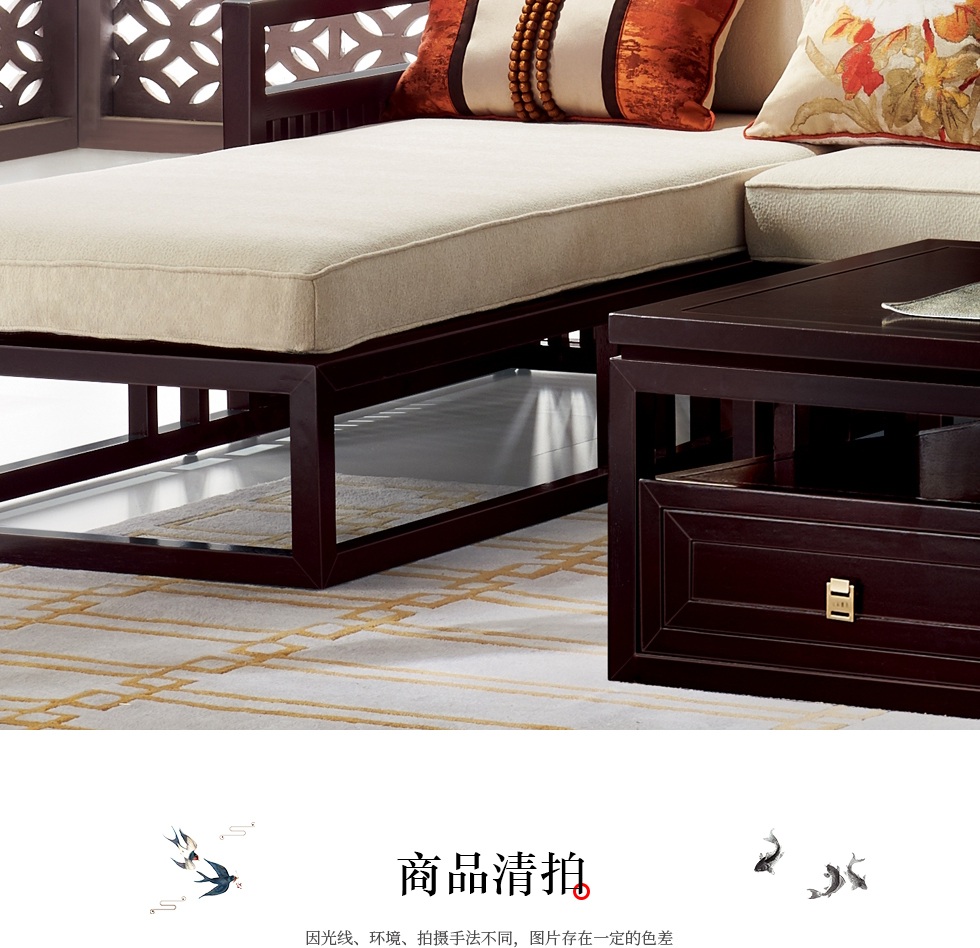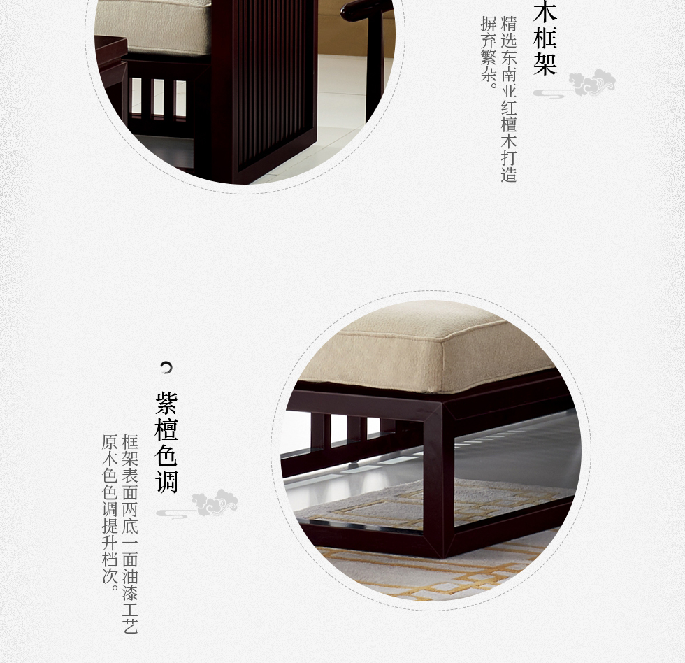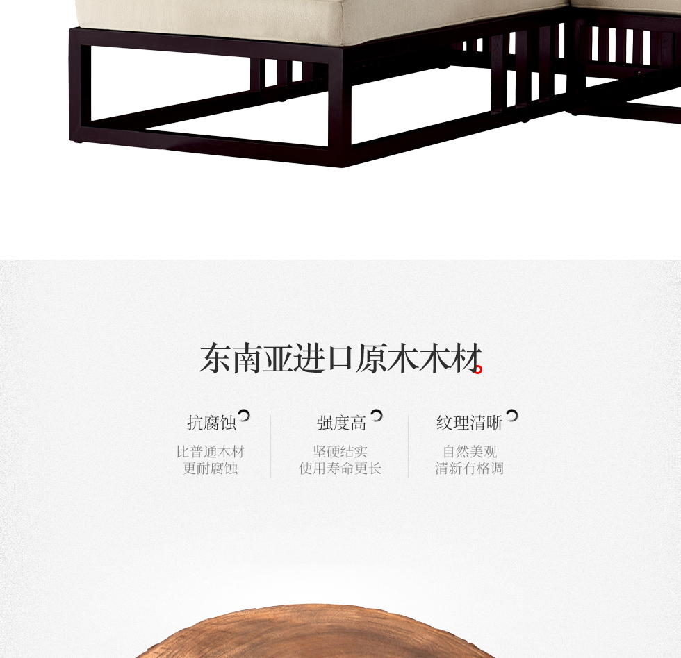 商品名称:槿漫轩家具 坐右/坐左转角沙发 新中式 东南亚红檀木+麻布软包
