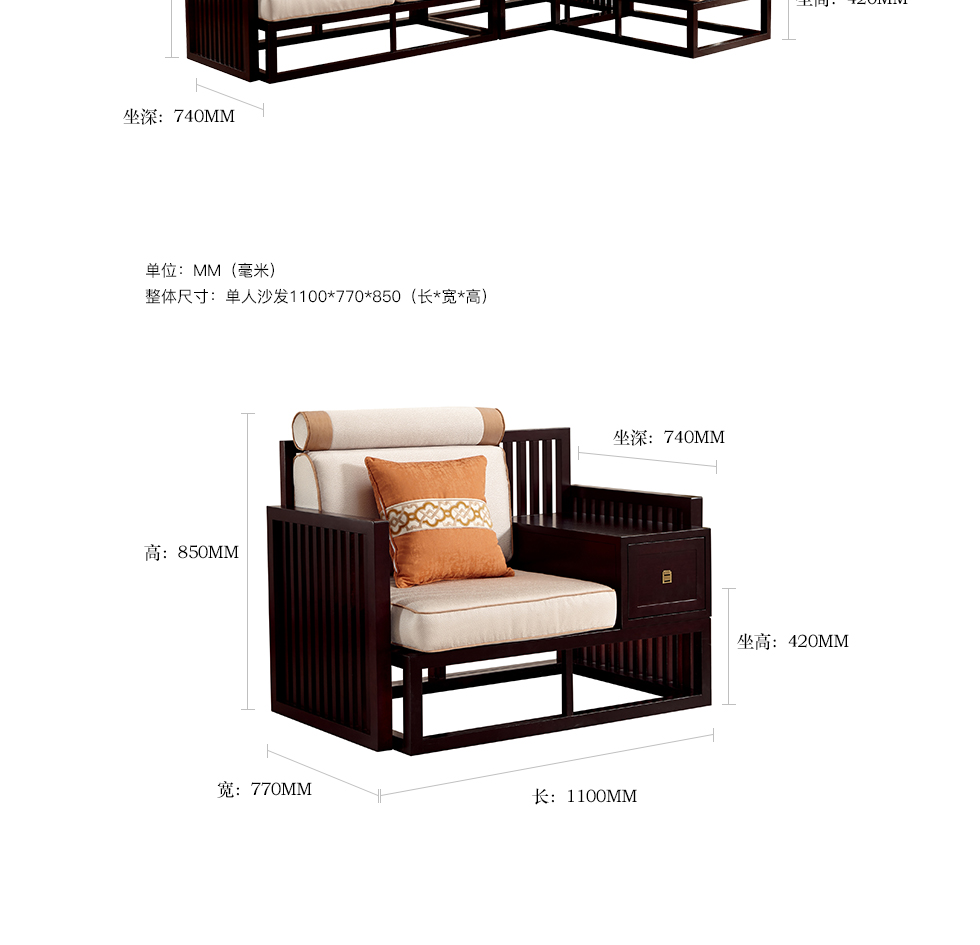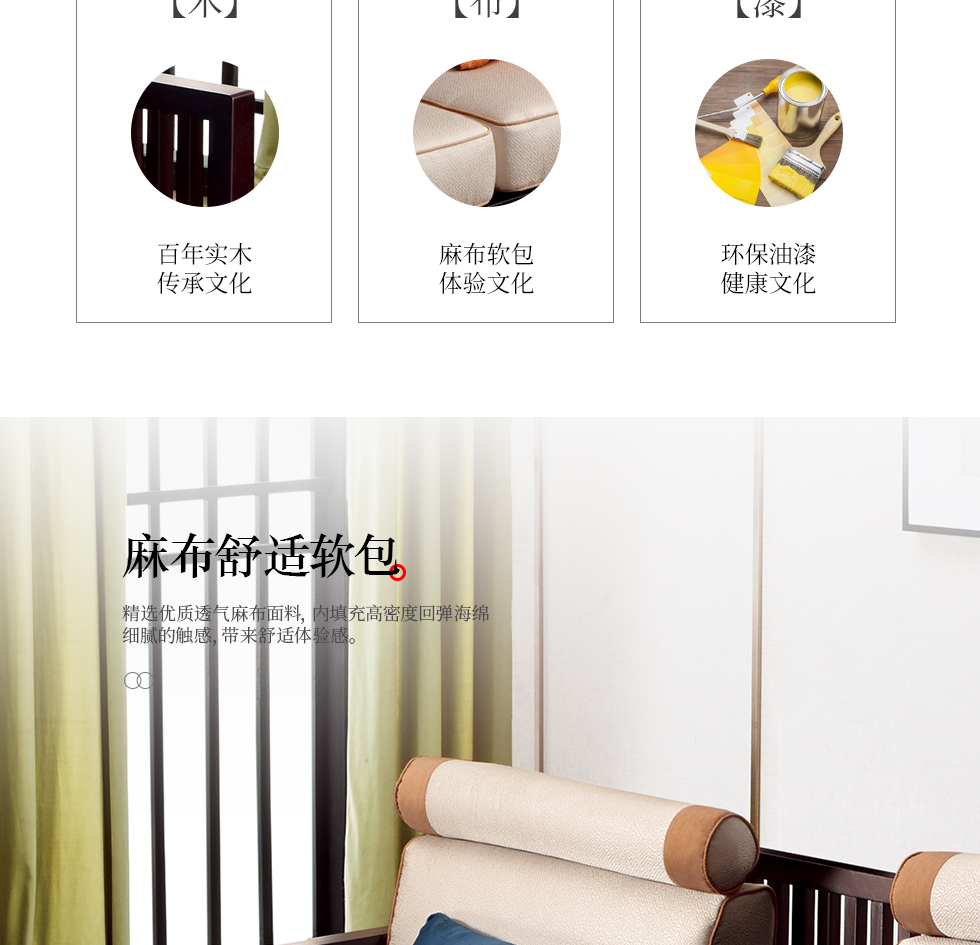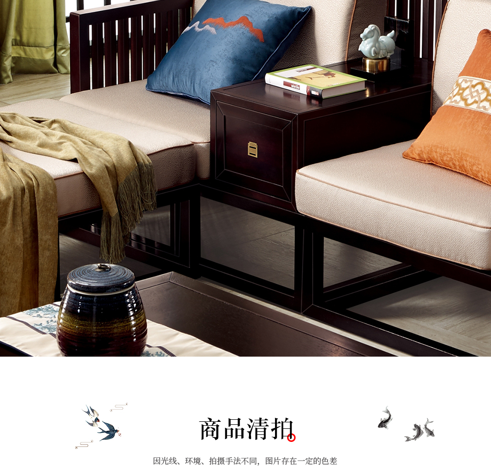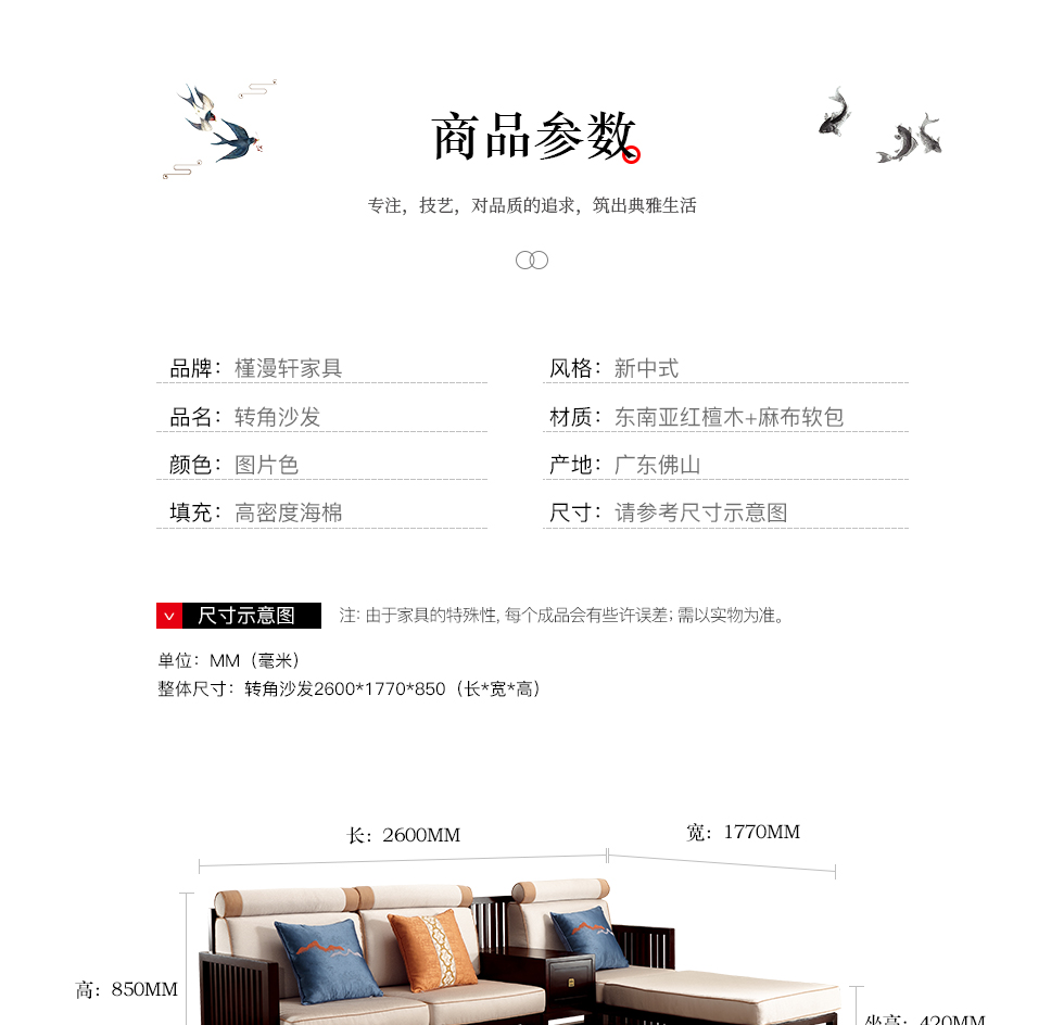 商品名称:槿漫轩家具 转角沙发/双扶单位沙发 新中式 东南亚红檀木+麻布软包