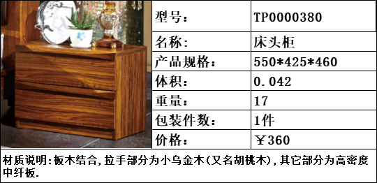 商品名称:纯典 中式风格 北美进口胡桃木 床头柜