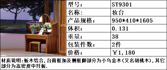 商品名称:纯典 中式风格 北美进口胡桃木 妆台