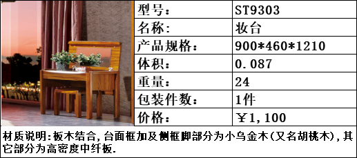 商品名称:纯典 中式风格 北美进口胡桃木 妆台