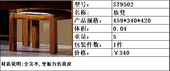 商品名称:纯典 中式风格 北美进口胡桃木 仿真皮妆凳