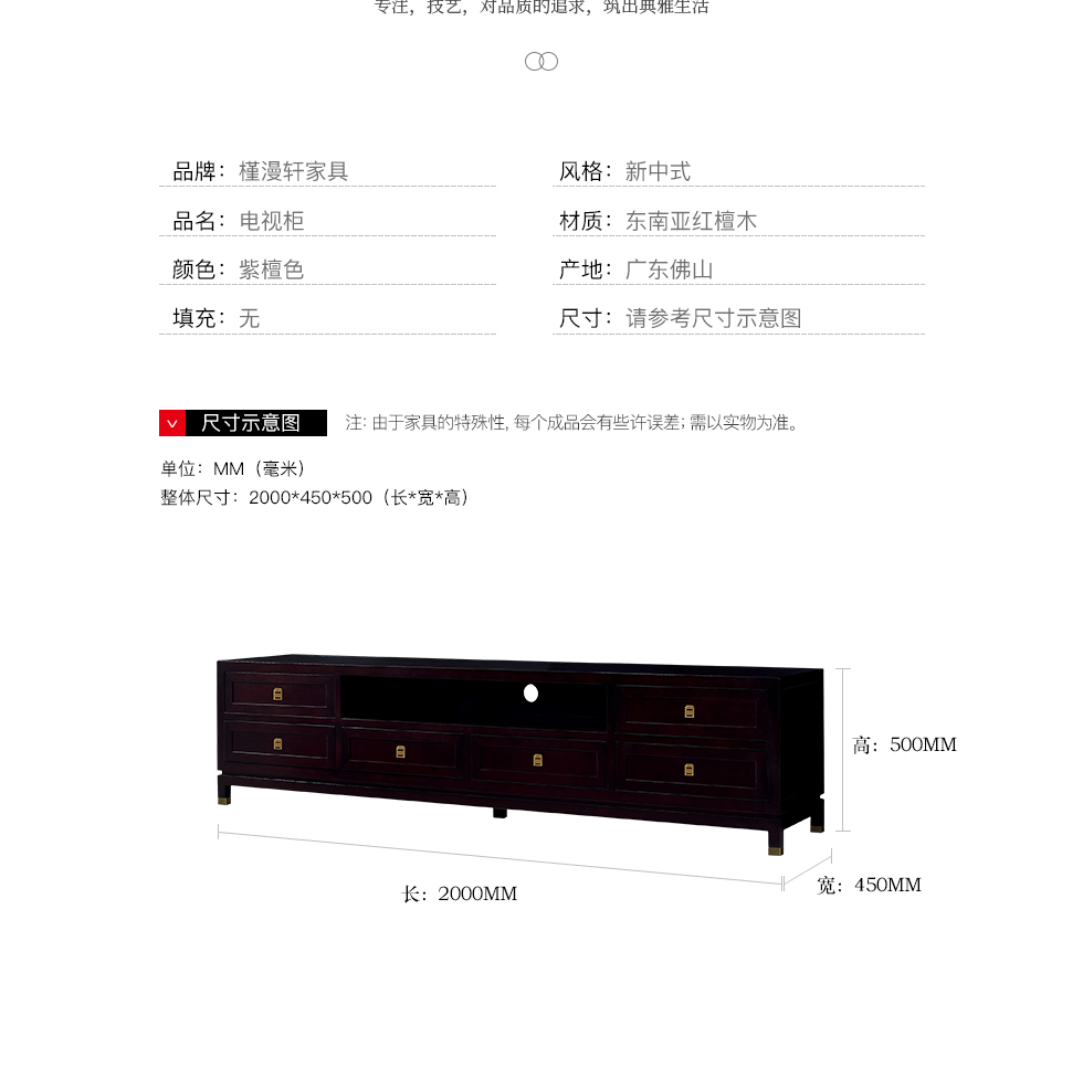 商品名称:槿漫轩家具 电视柜 新中式 东南亚红檀木