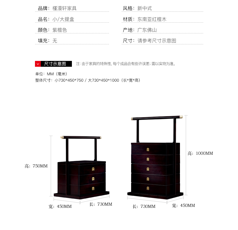 商品名称:槿漫轩家具 小/大提盒 新中式 东南亚红檀木