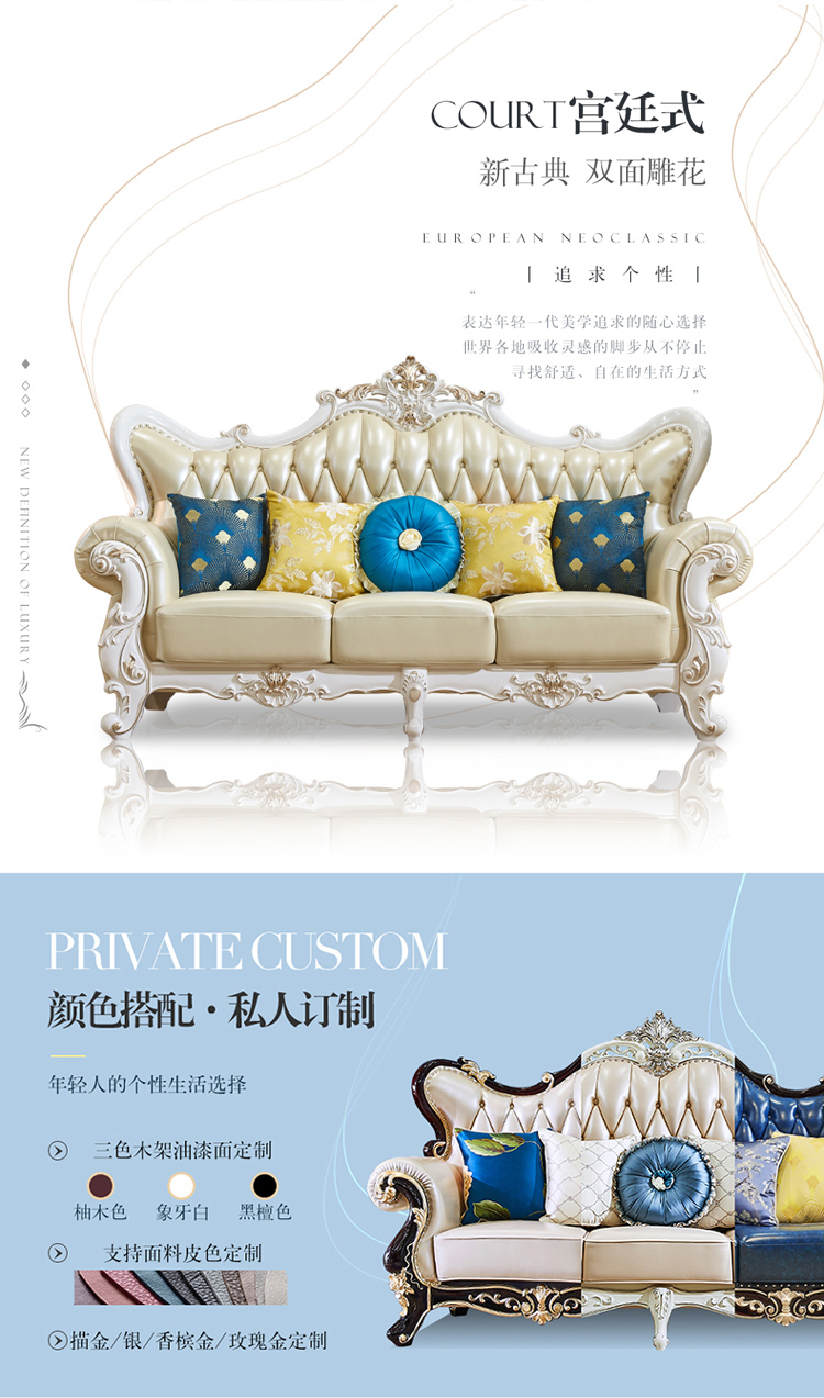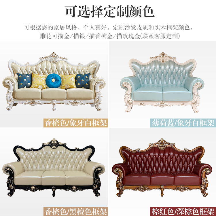 商品名称:欧式轻奢真皮沙发组合客厅现代简约大小户型皮艺头层牛皮北欧沙发