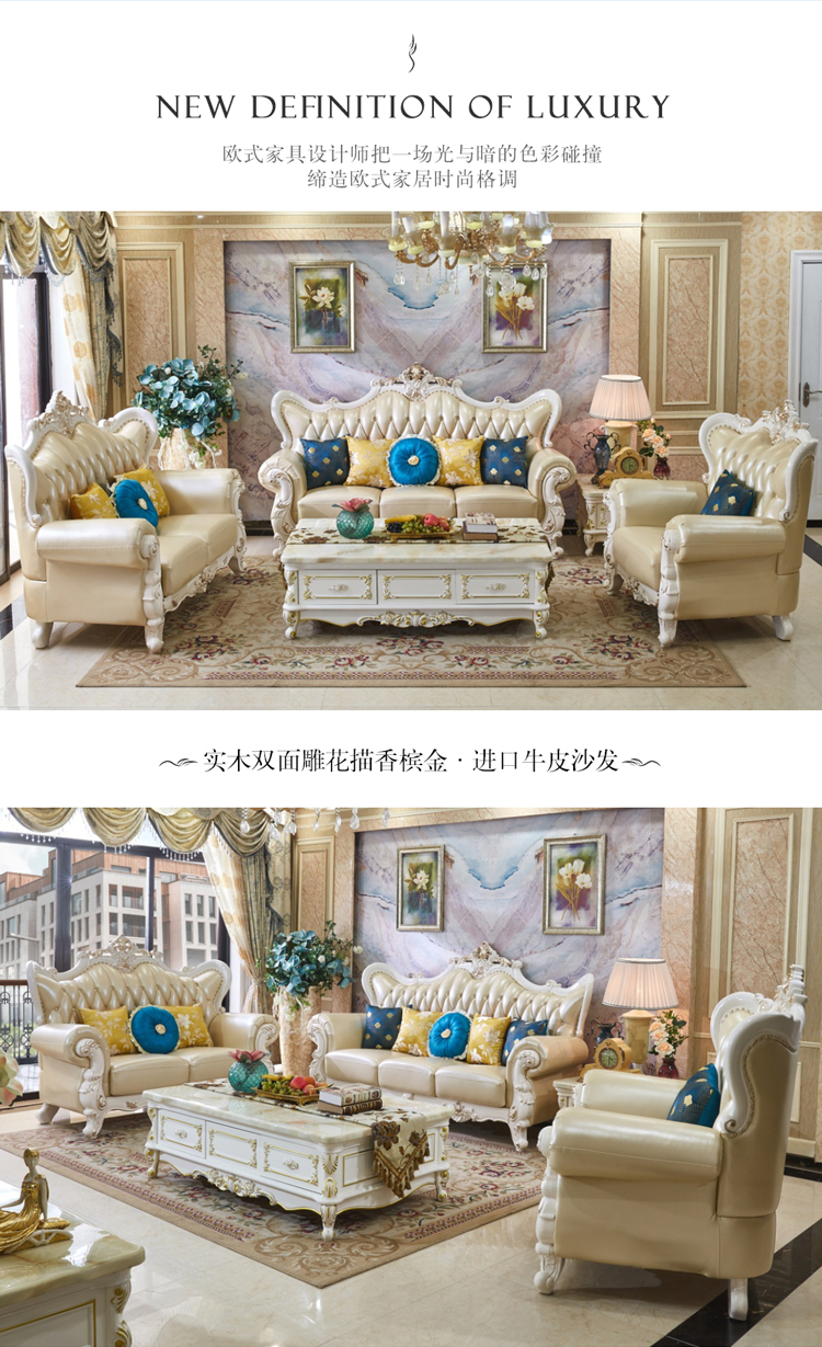 欧式轻奢真皮沙发组合客厅现代简约大小户型皮艺头层牛皮北欧沙发