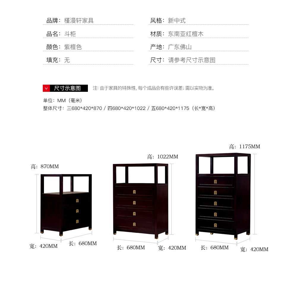 商品名称:槿漫轩家具 三/四/五斗柜 新中式 东南亚红檀木
