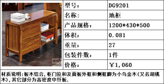 商品名称:纯典 中式风格 北美进口胡桃木 地柜1200*430*500
