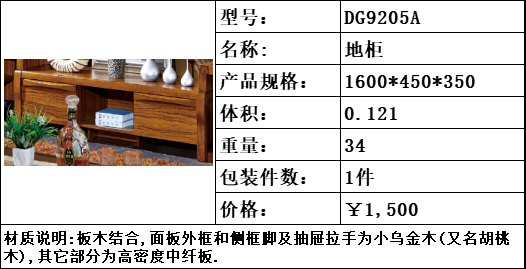 商品名称:纯典 中式风格 北美进口胡桃木 地柜ABC款