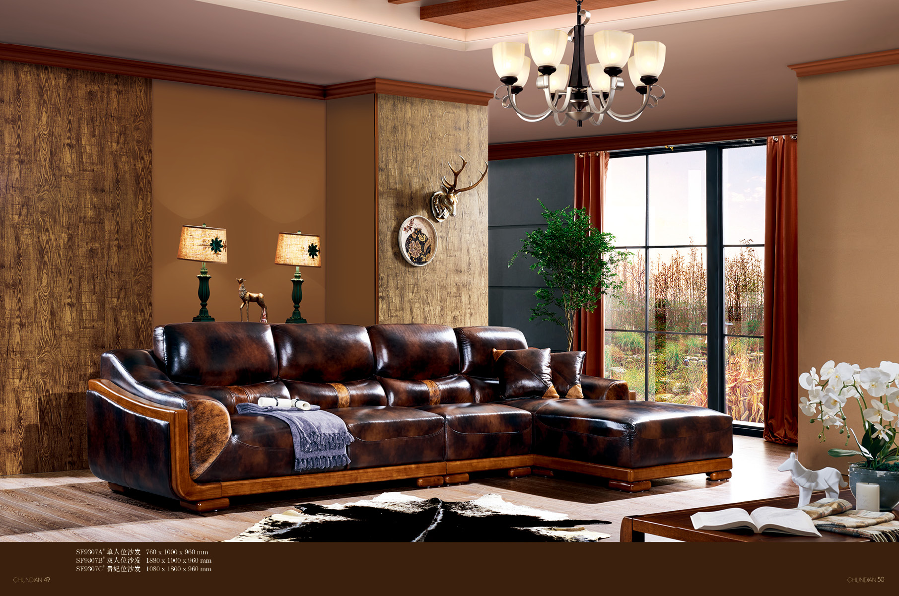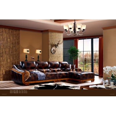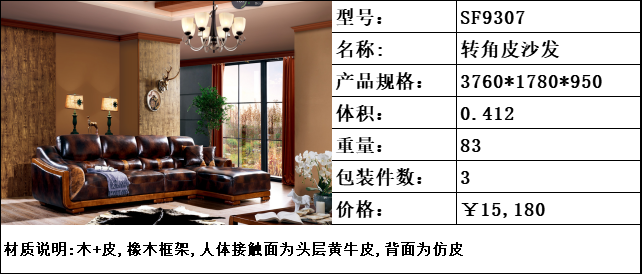 商品名称:纯典 中式风格 北美进口胡桃木 头层黄牛皮 转角沙发