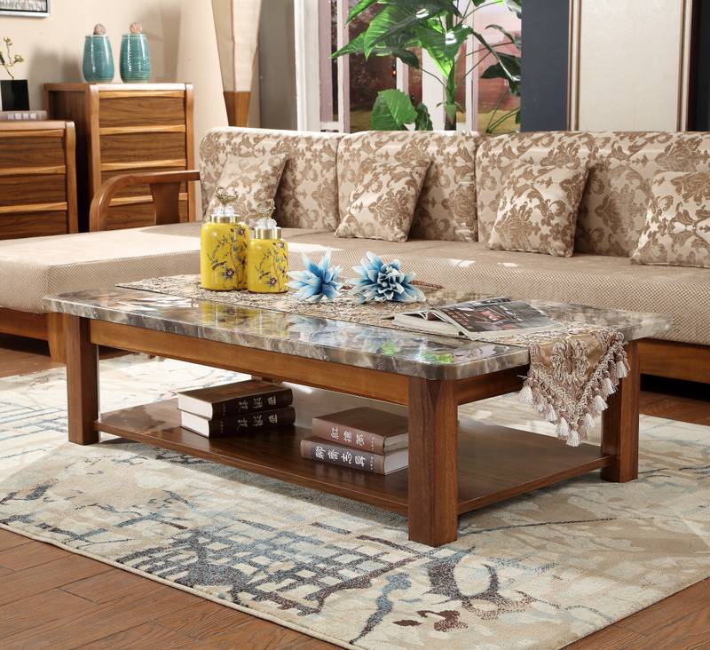 商品名称:纯典 中式风格 北美进口胡桃木 大理石长茶几