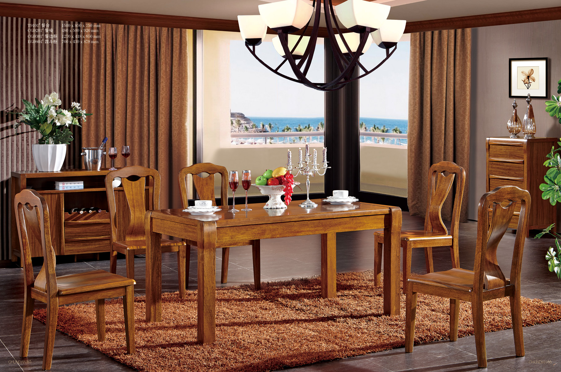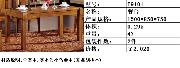 商品名称:纯典 中式风格 北美进口胡桃木(全实木)长方形 餐台