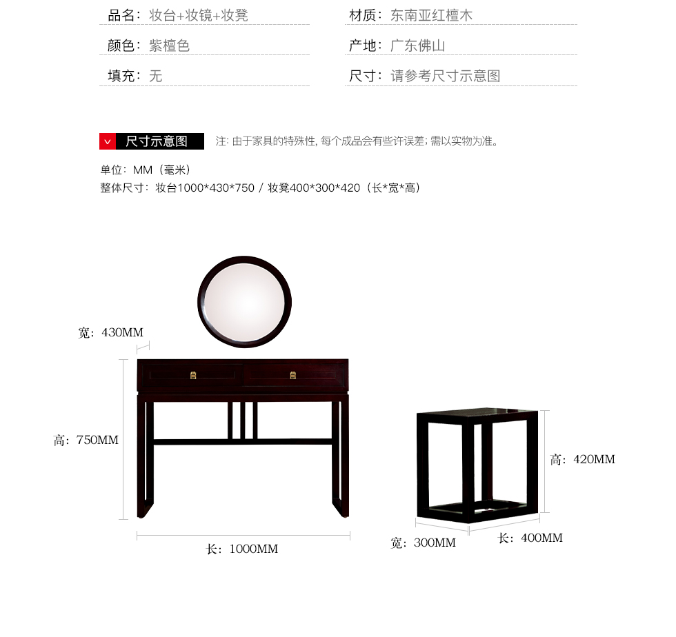 商品名称:槿漫轩家具 妆台+妆凳 新中式 东南亚红檀木