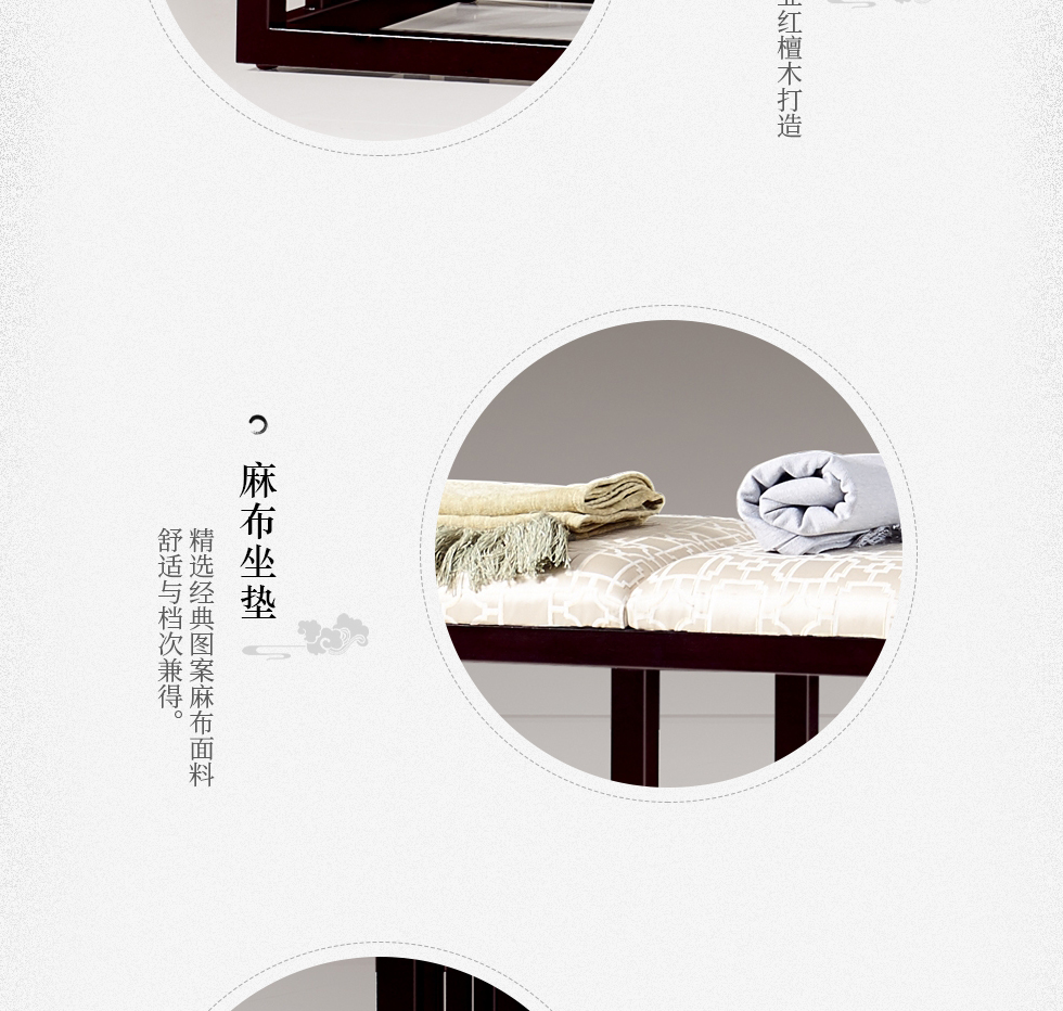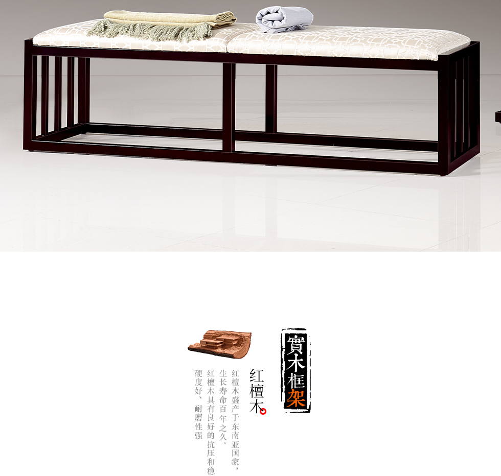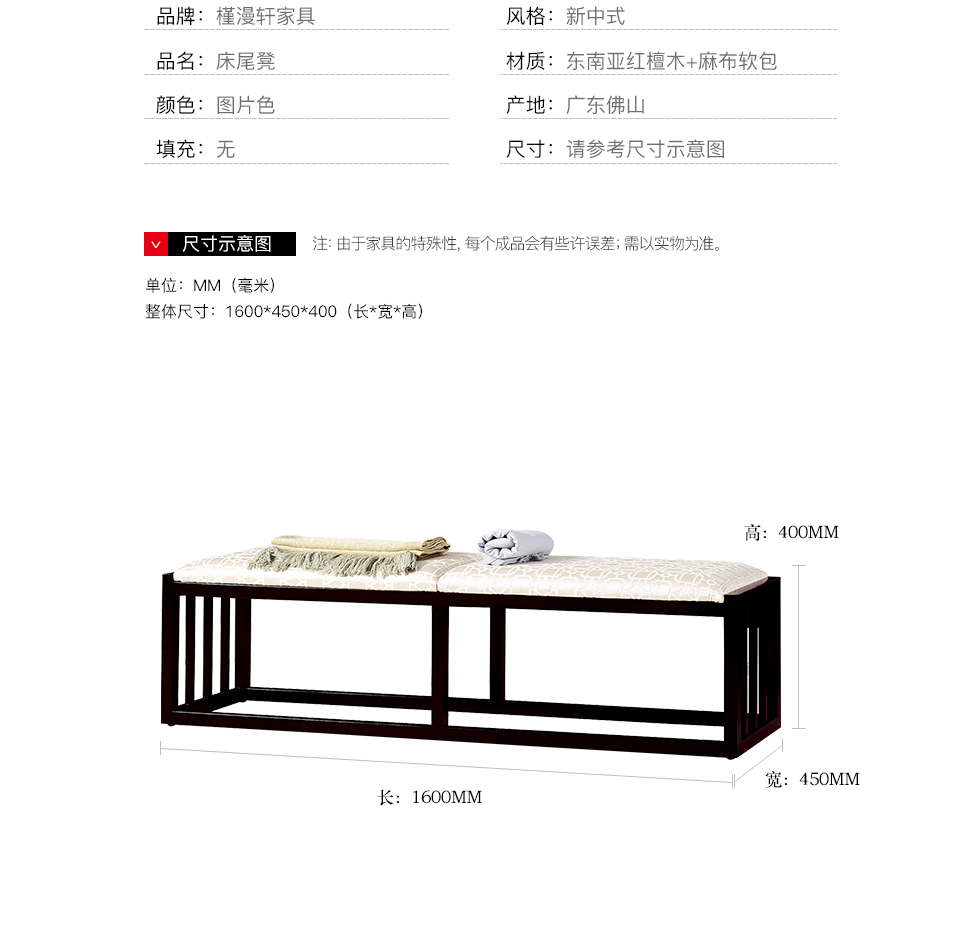 商品名称:槿漫轩家具 床尾凳 新中式 东南亚红檀木+麻布软包