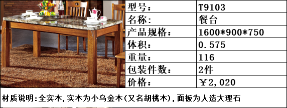 商品名称:纯典 中式风格 北美进口胡桃木 大理石餐台