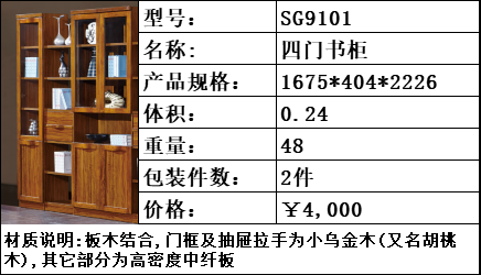 商品名称:纯典 中式风格 北美进口胡桃木 书柜