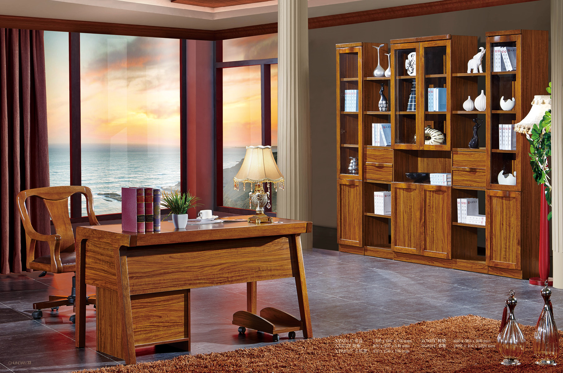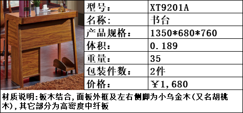 商品名称:纯典 中式风格 北美进口胡桃木 书台 附柜 主机架