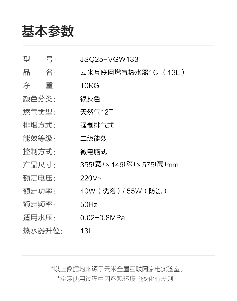 商品名称:VIOMI/云米旗舰店 恒温 燃气热水器 小米 家用 13L 升 天然气 变频 卫生间