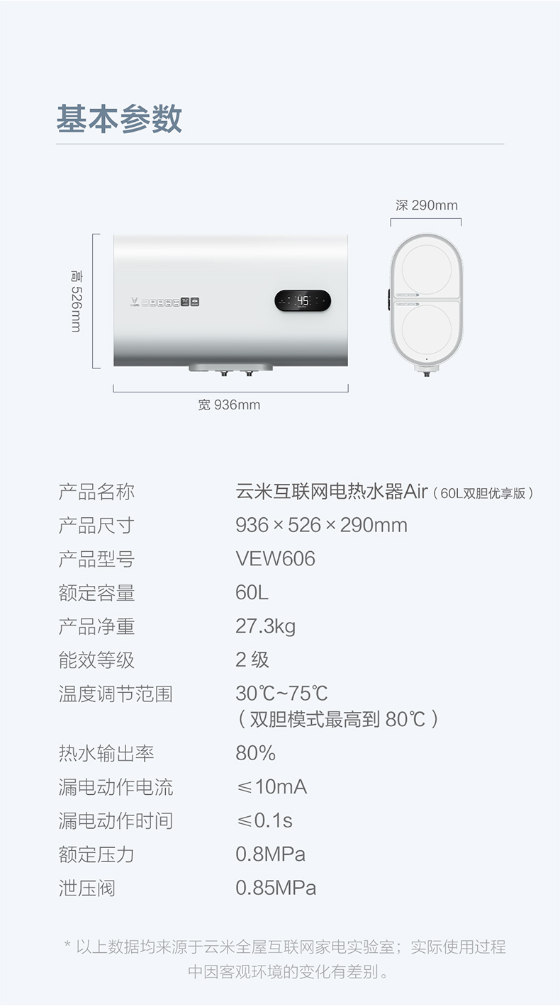 商品名称:云米旗舰店扁桶热水器电家用60L升双胆速热小米储水式卫生间淋浴