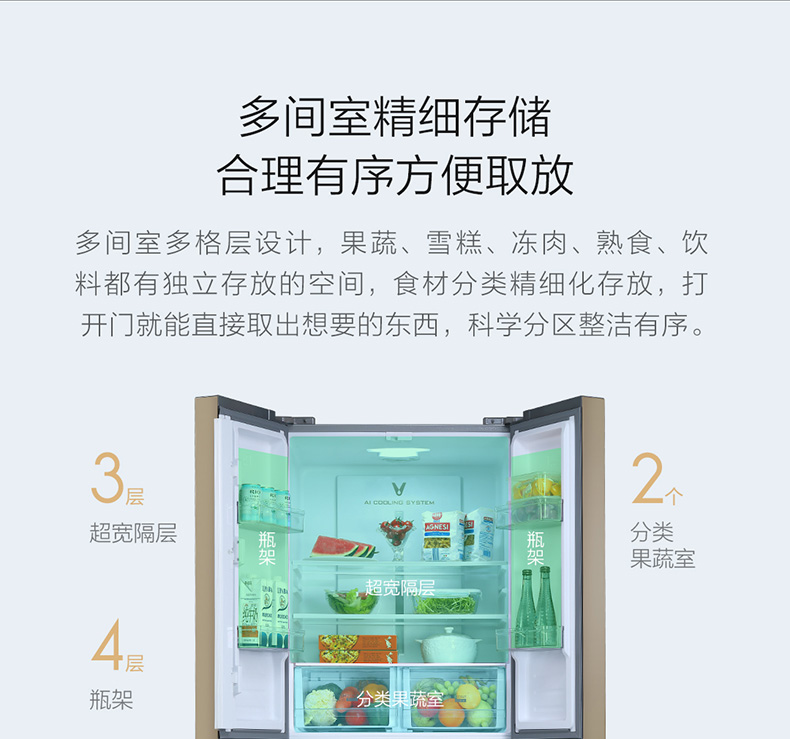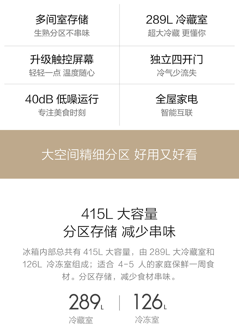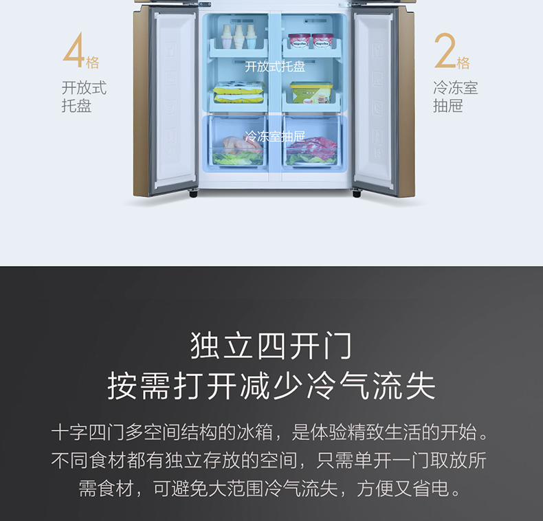 商品名称:云米旗舰店415升风冷无霜十字对开四开门静音节能家用冰箱