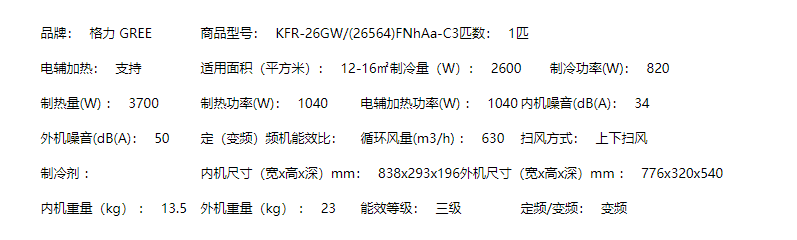 商品名称:格力凉之夏(GREE)大1匹 格力空调 E享舒适 自洁 变频 快速冷暖 壁挂式卧室空调挂机