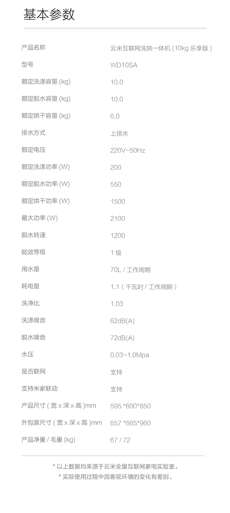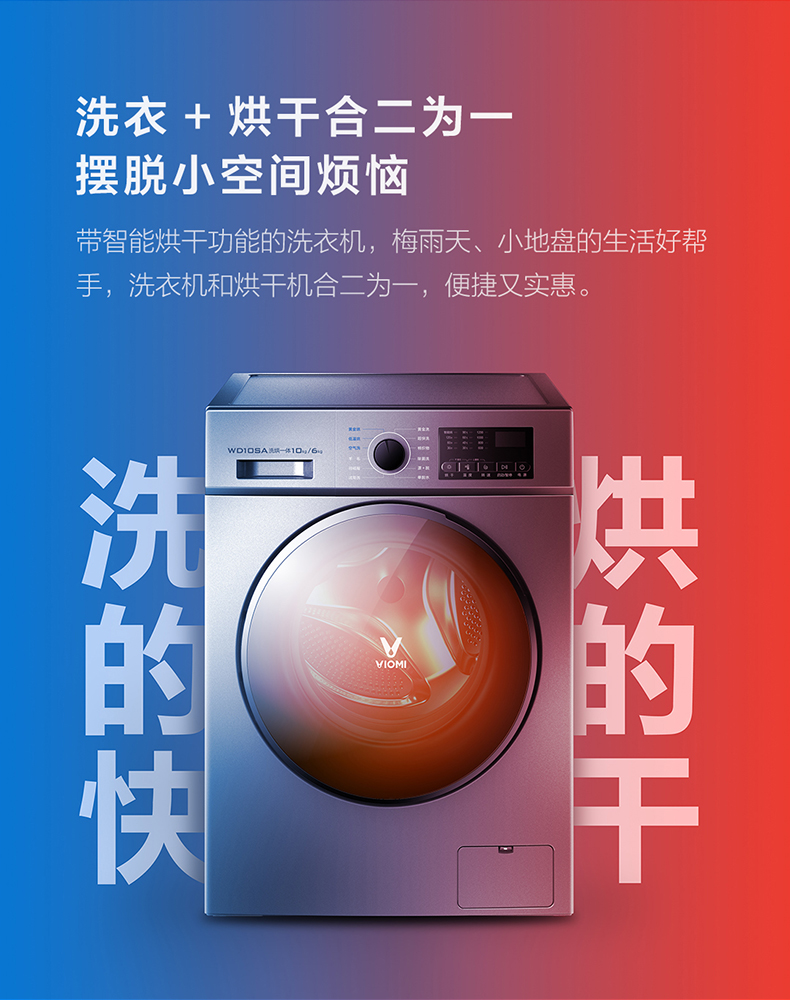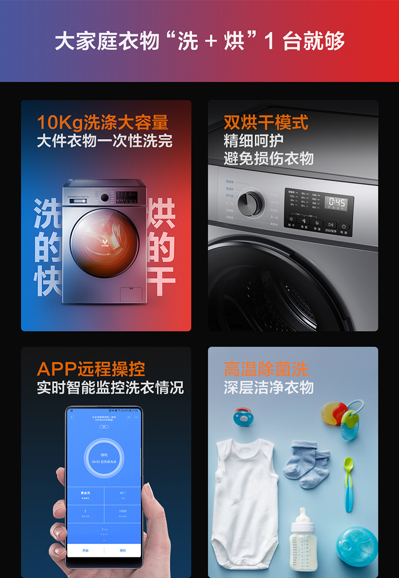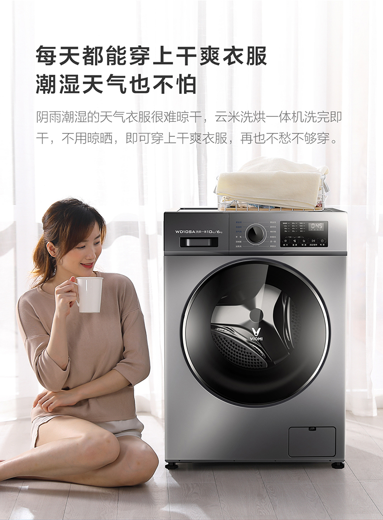 商品名称:VIOMI/云米10kg公斤全自动变频滚筒洗衣机洗烘干一体消毒洗