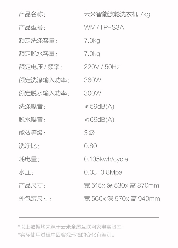 商品名称:VIOMI/云米家用全自动洗衣机 7公斤kg波轮小型洗脱一体大容量
