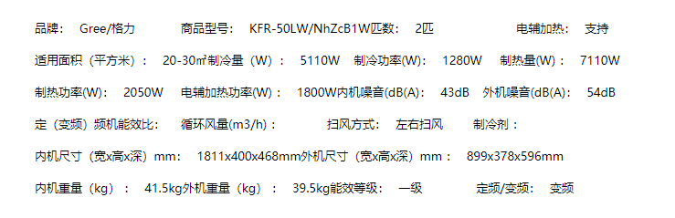 商品名称:Gree/格力 KFR-50LW 大2匹智能变频一级能效柜式空调客厅家用云锦x