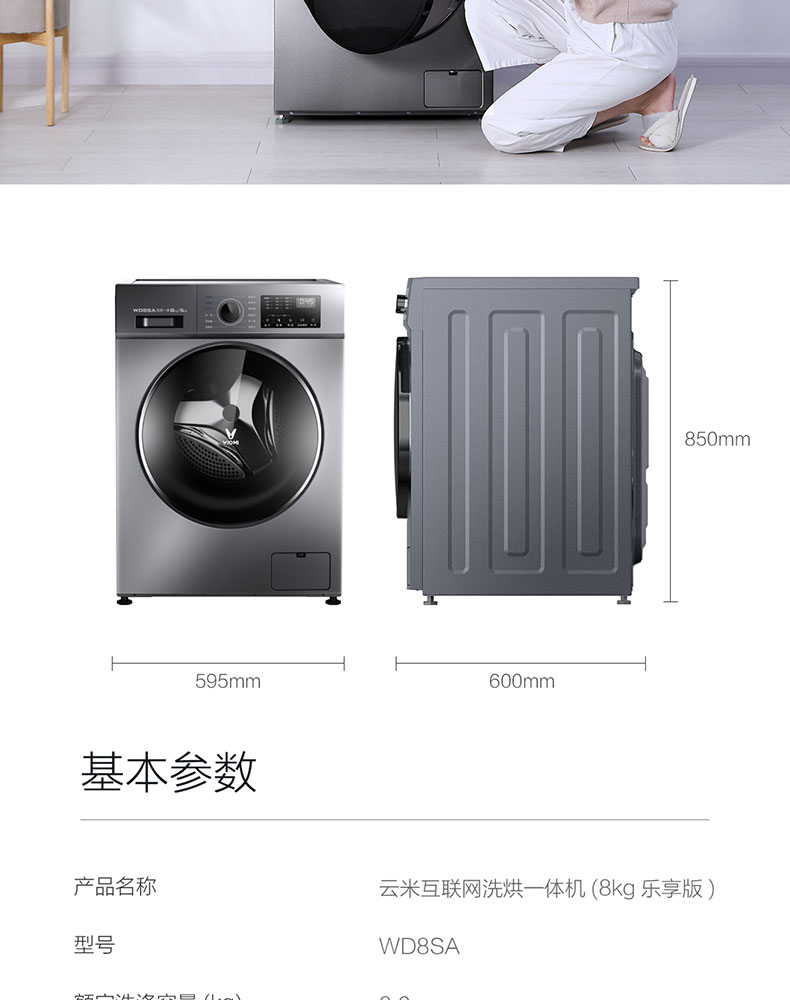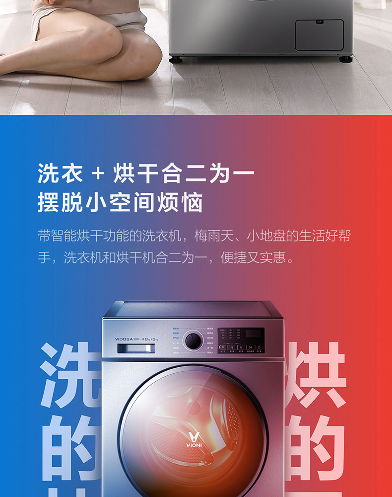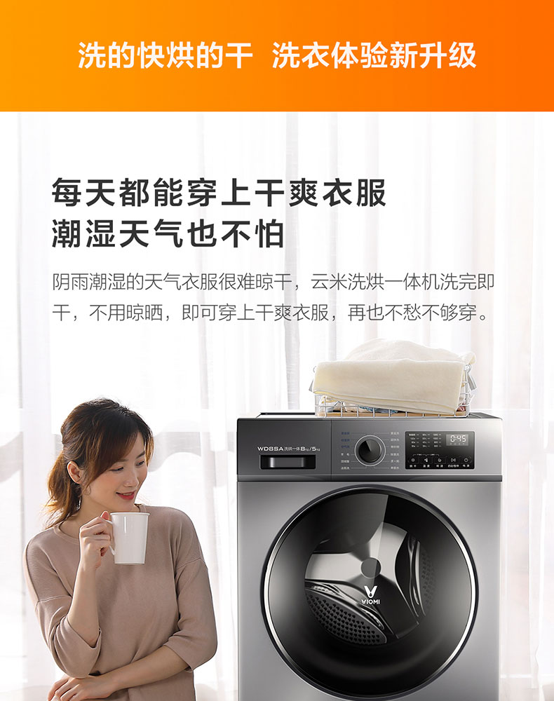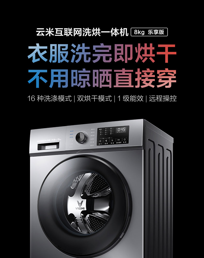 商品名称:VIOMI/云米8kg公斤全自动变频滚筒洗衣机洗烘干一体消毒洗