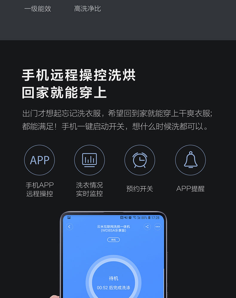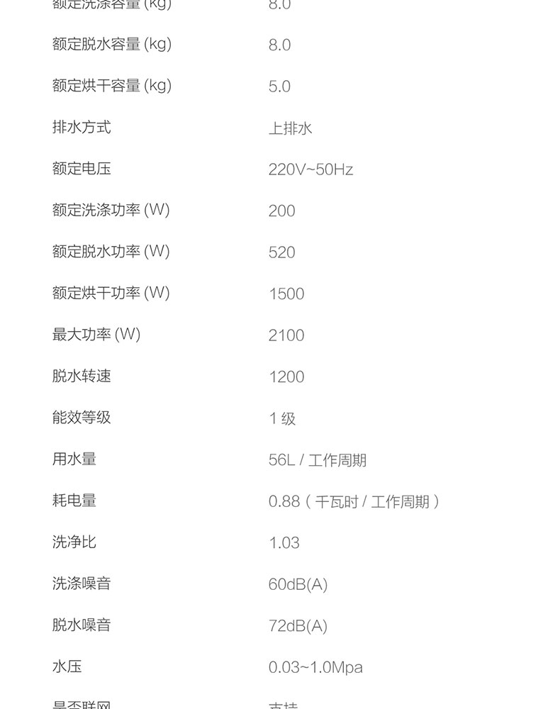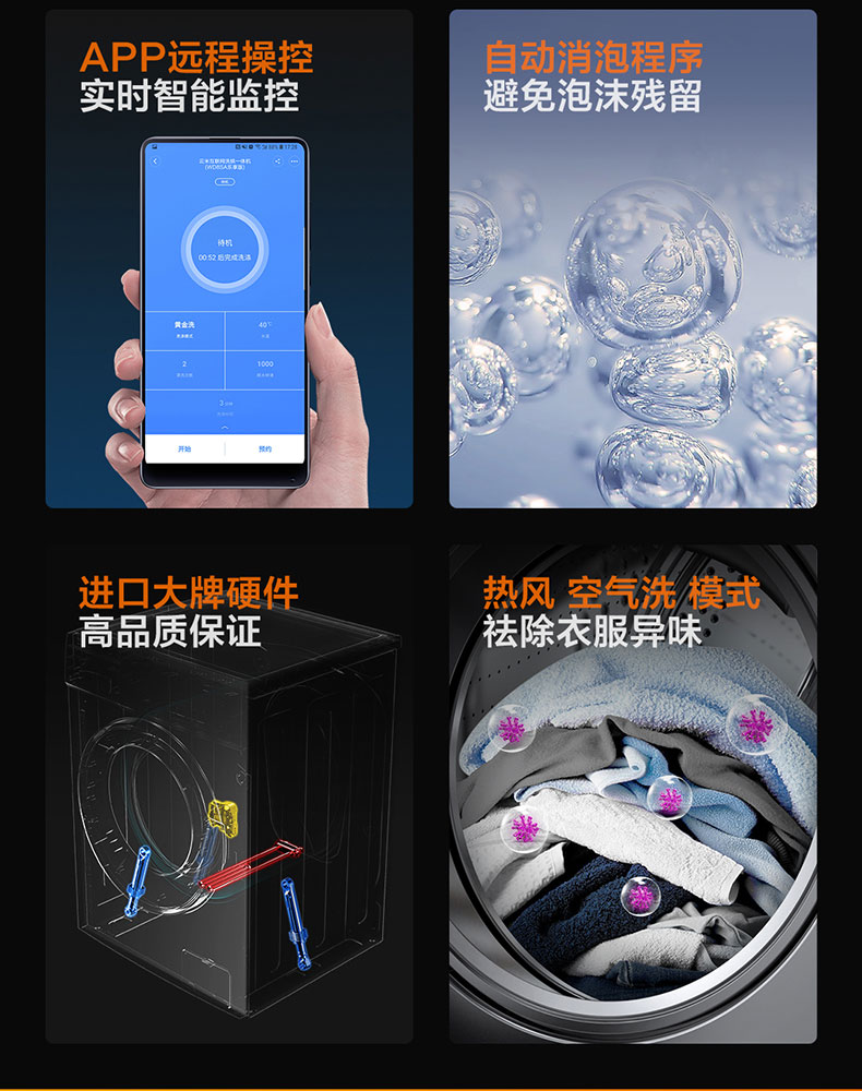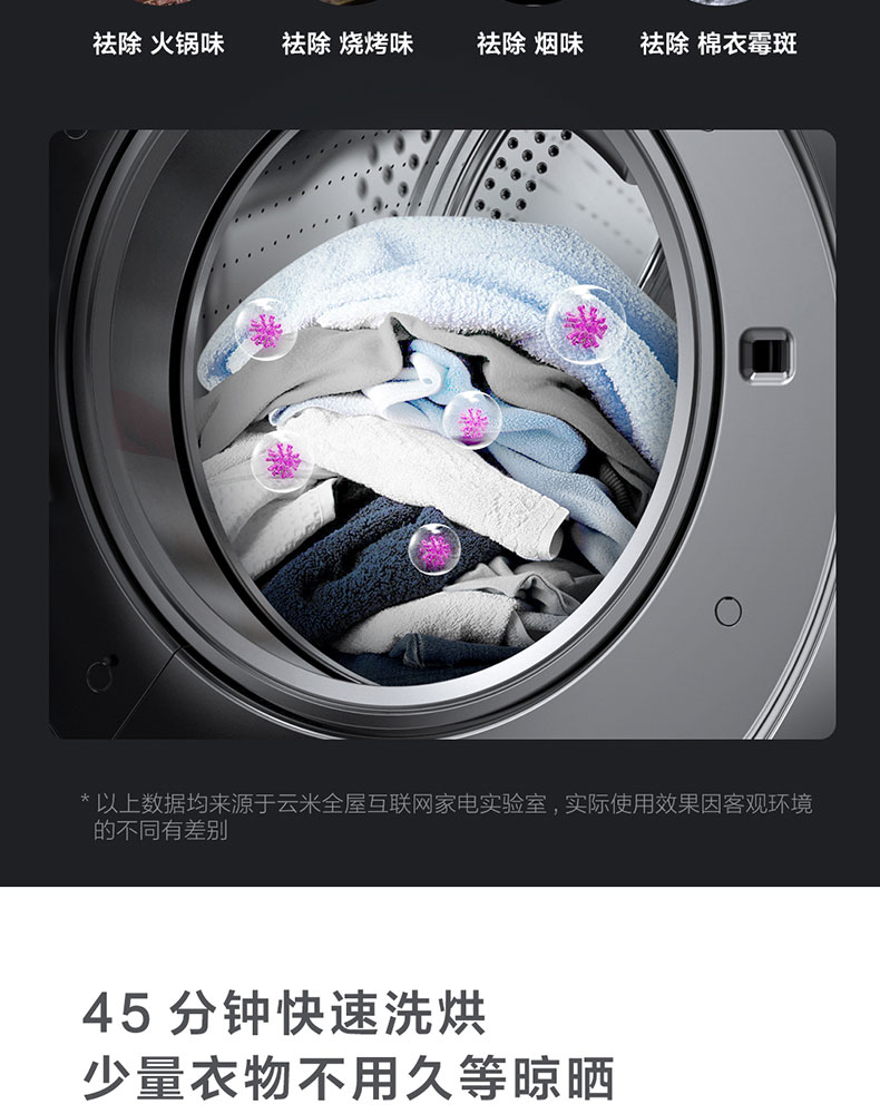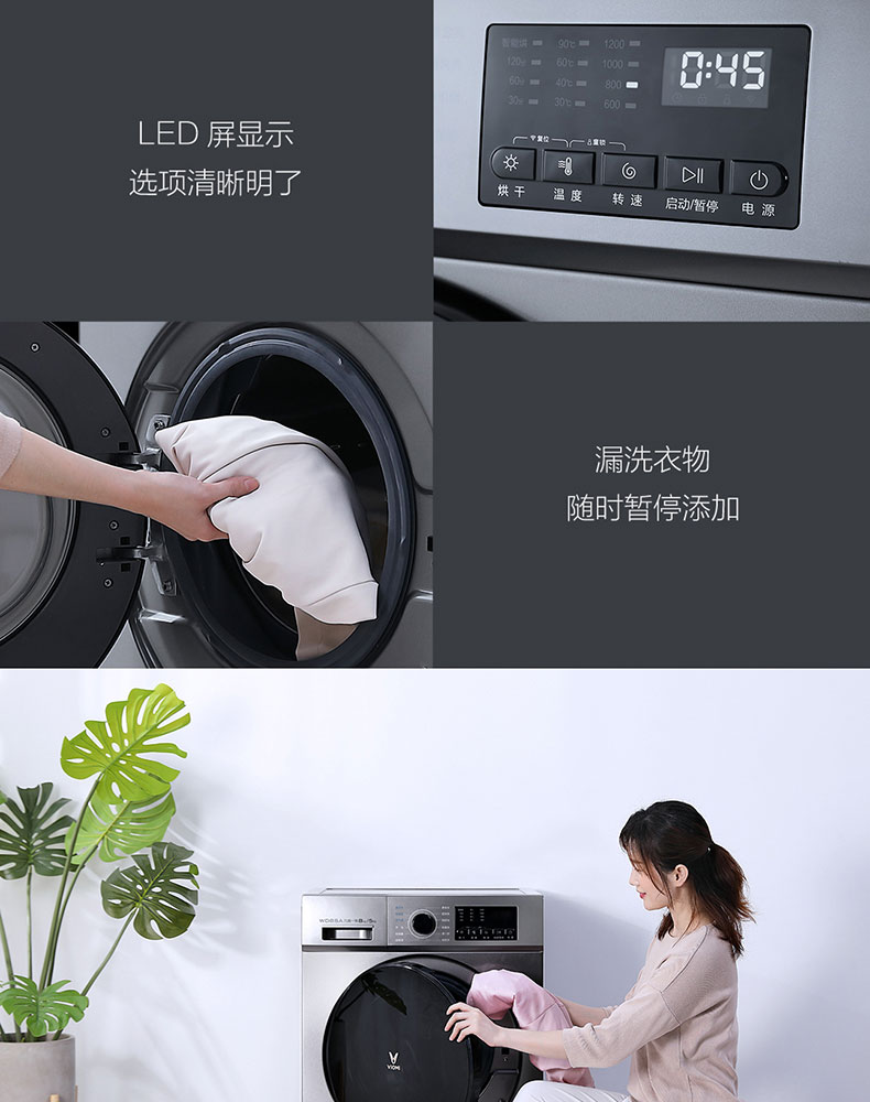 商品名称:VIOMI/云米8kg公斤全自动变频滚筒洗衣机洗烘干一体消毒洗