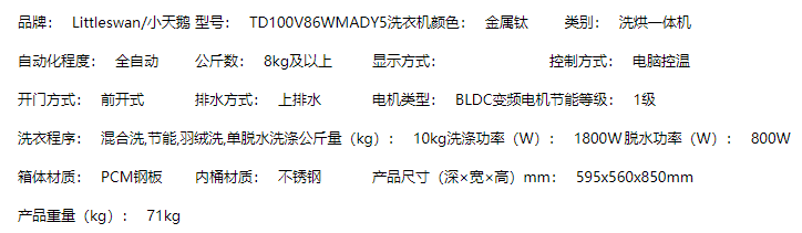 商品名称:【S】【LittleSwan/小天鹅洗衣机】【WSCXTE0032】10KG水魔方变频滚筒家用洗衣机