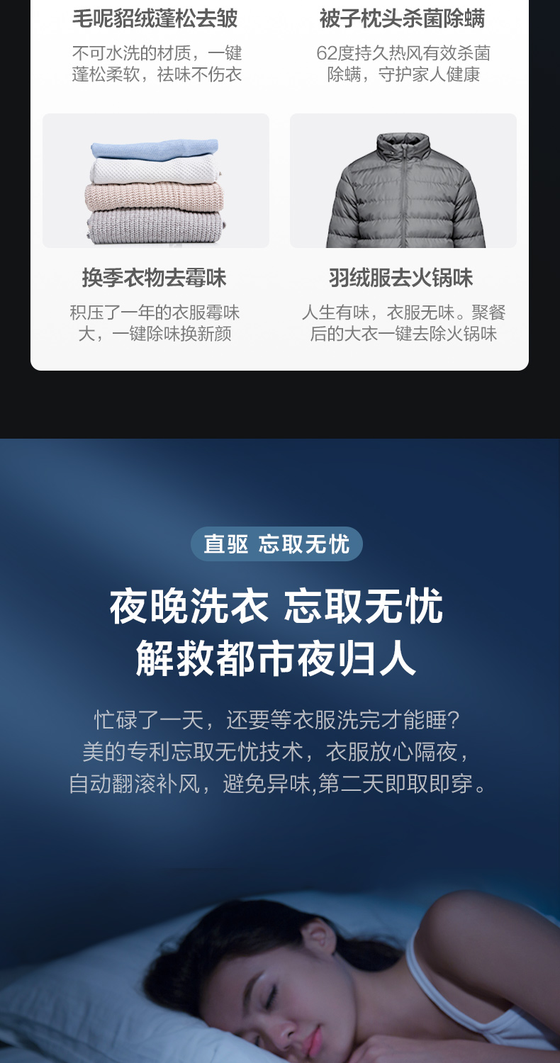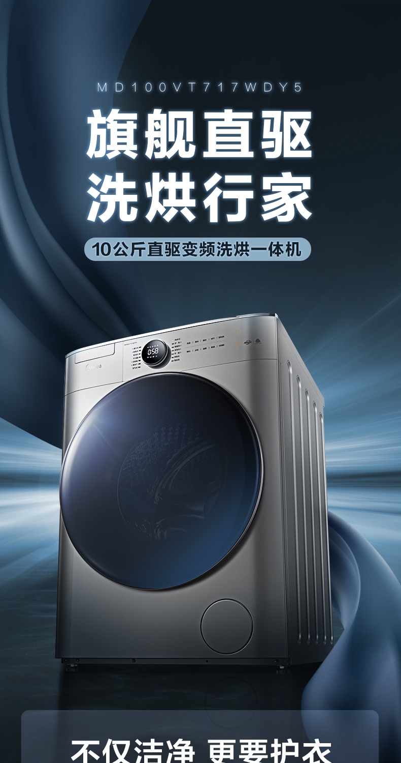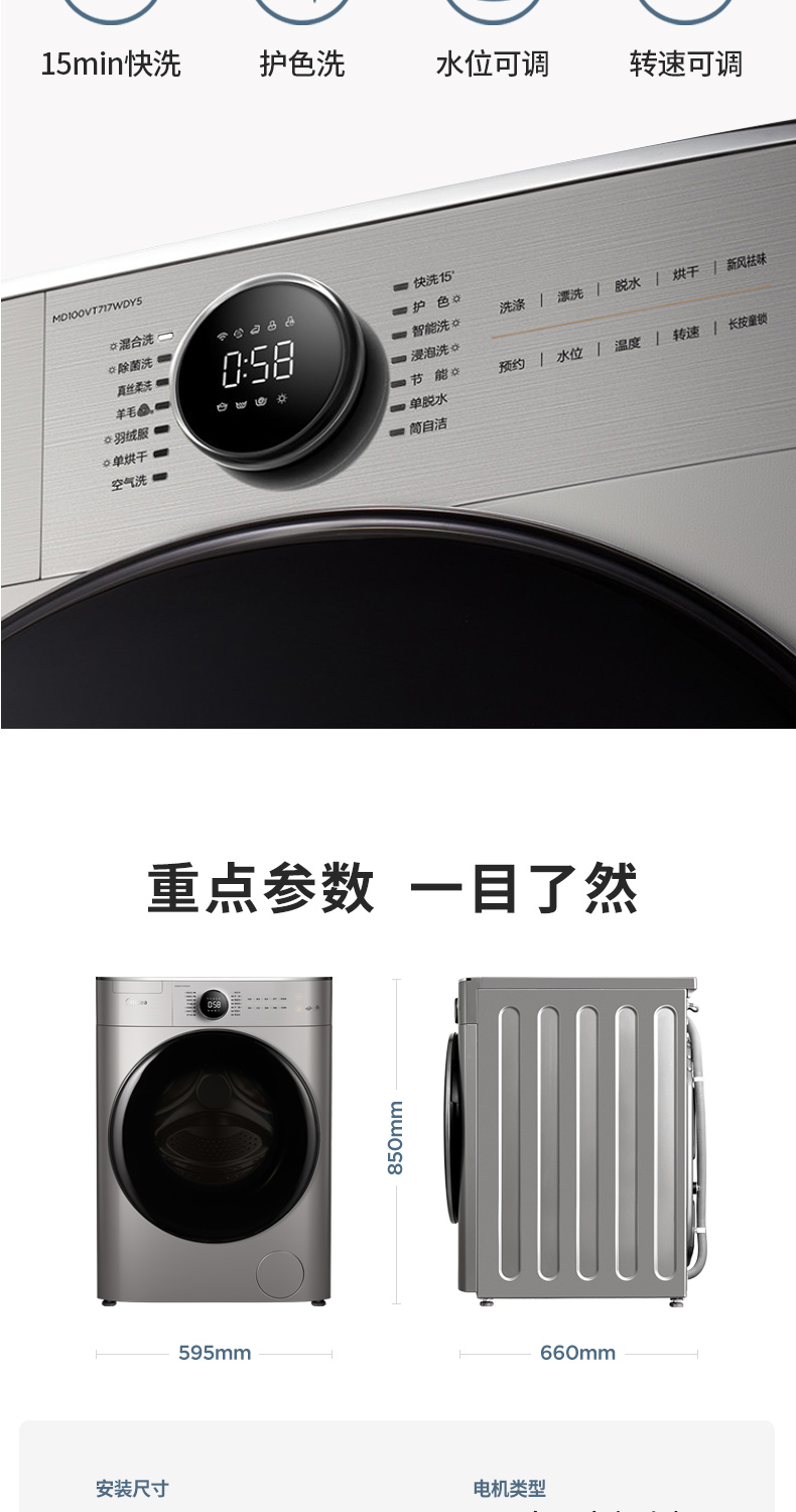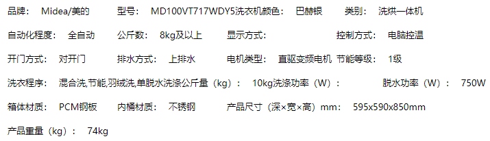 商品名称:美的10公斤KG洗衣机烘干一体全自动家用直驱滚筒