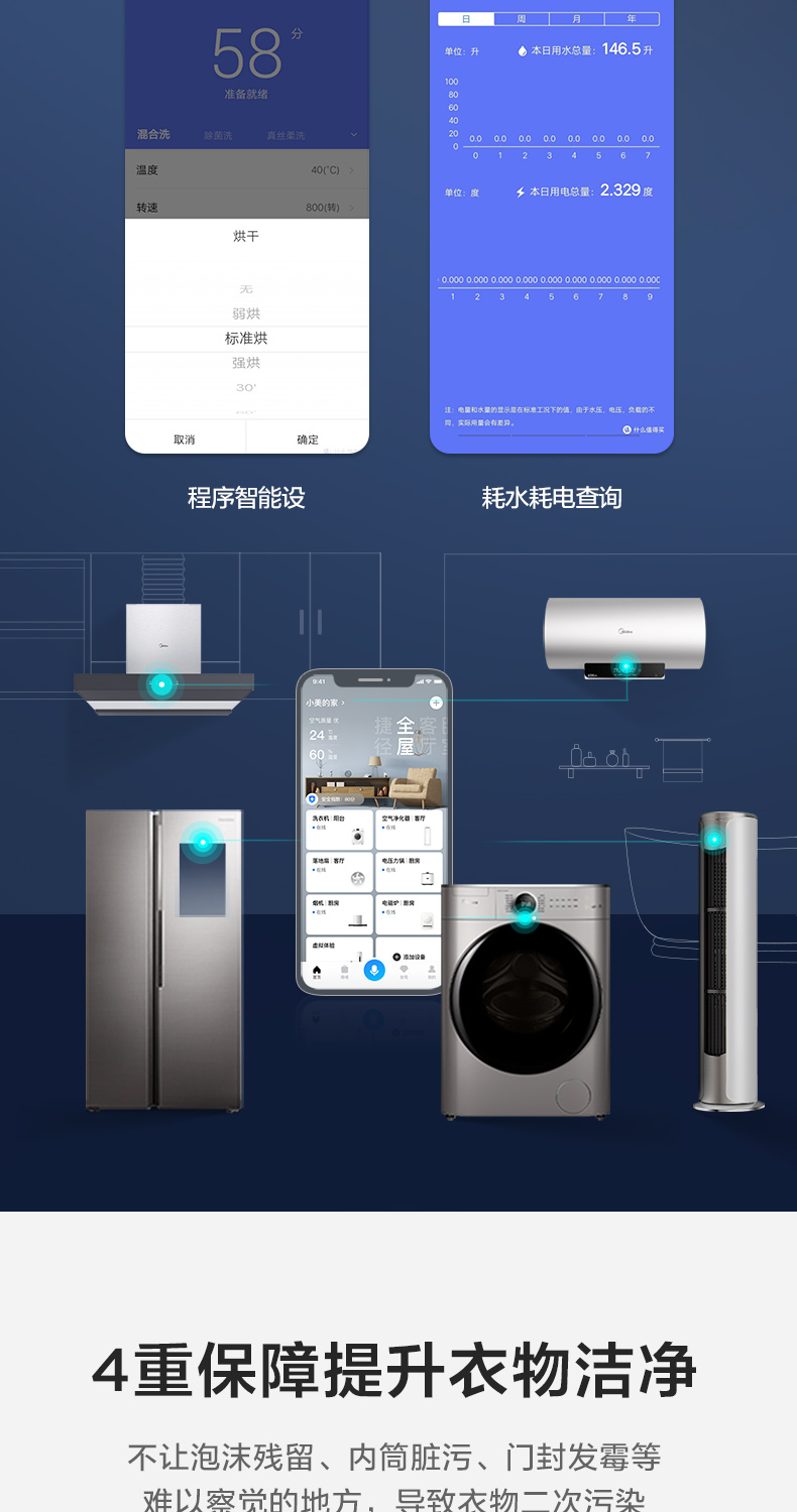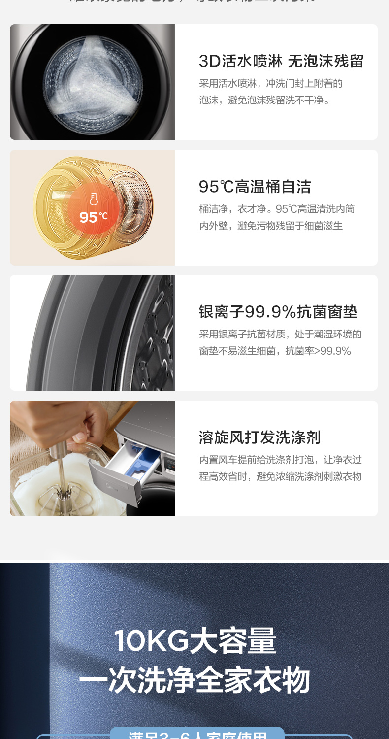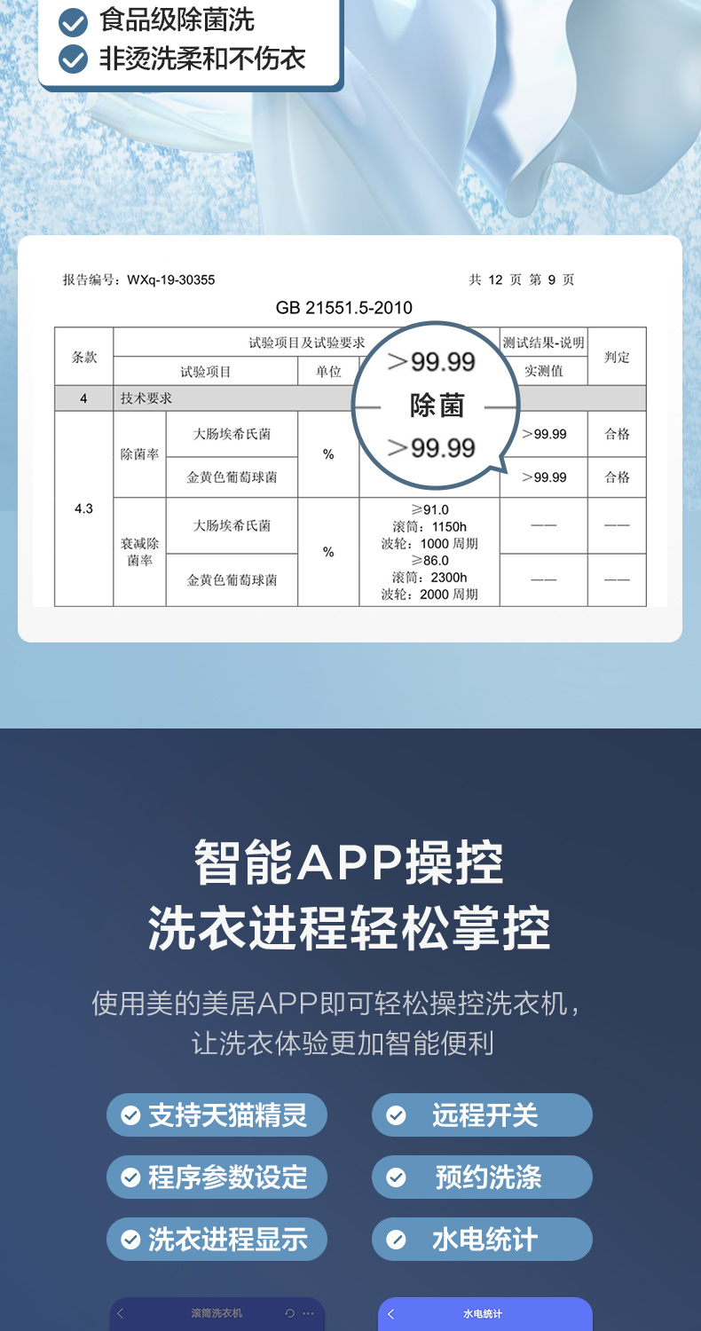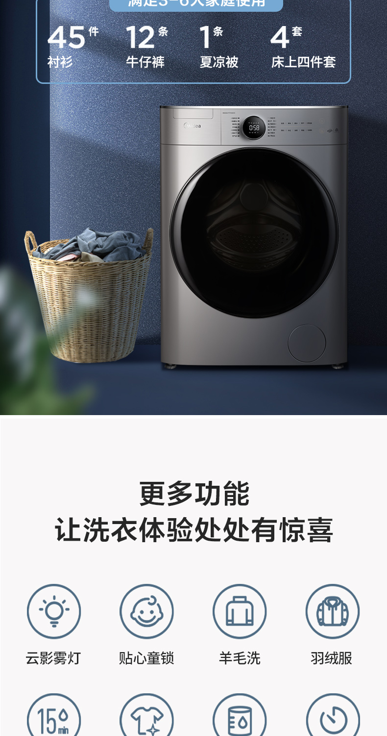 商品名称:美的10公斤KG洗衣机烘干一体全自动家用直驱滚筒