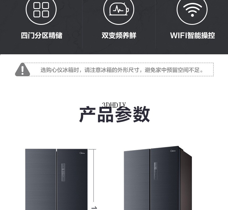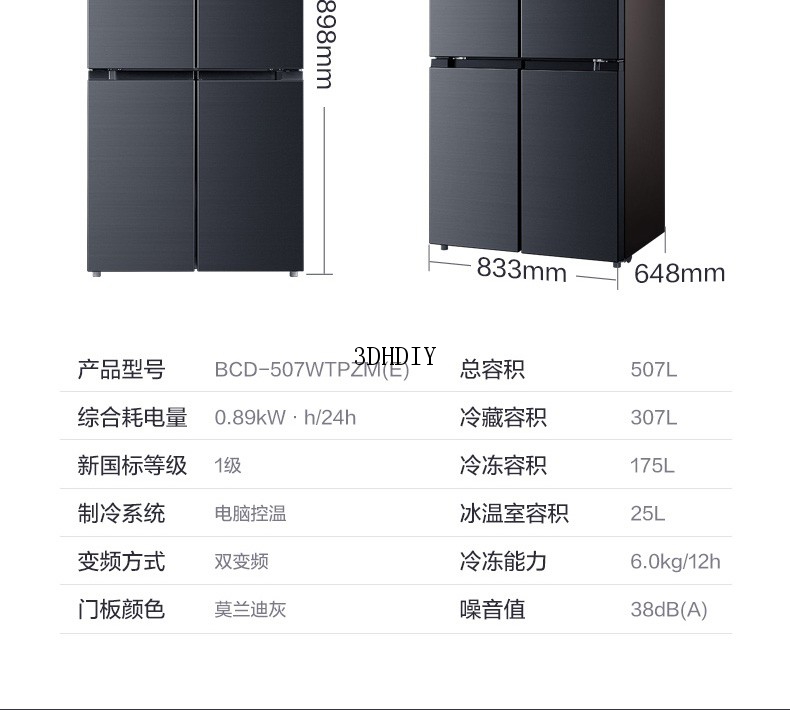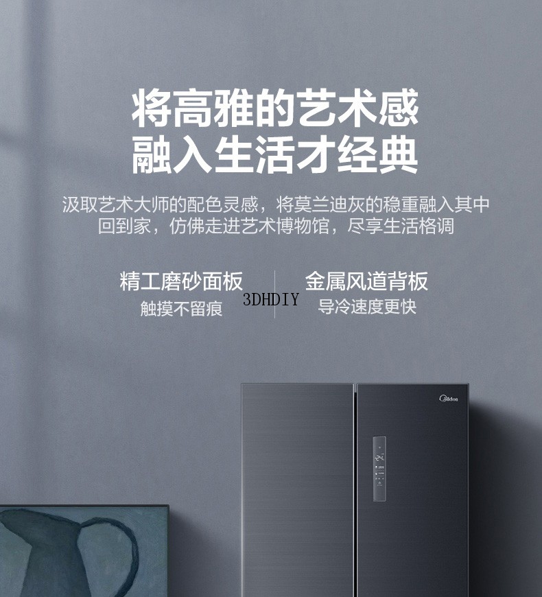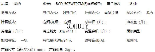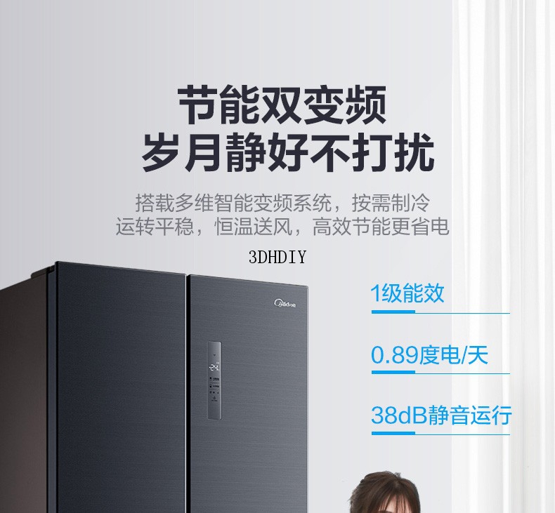 商品名称:【S】【美的电冰箱 】 507升十字对开双门冰箱家用无霜变频一级能效莫兰迪灰