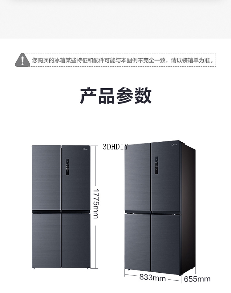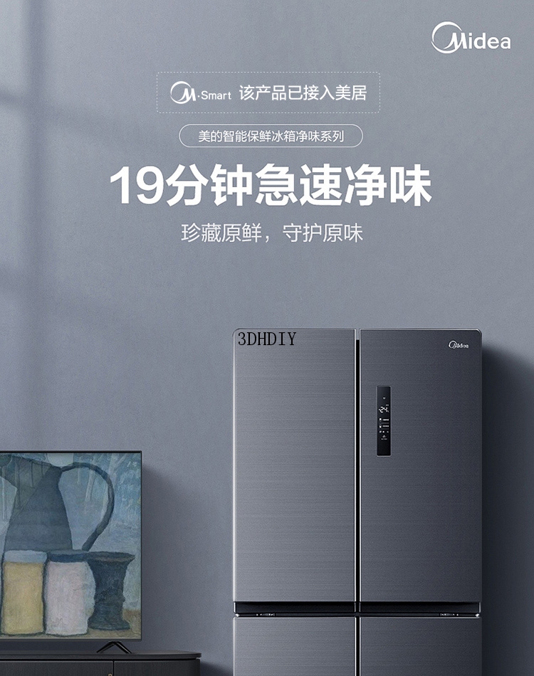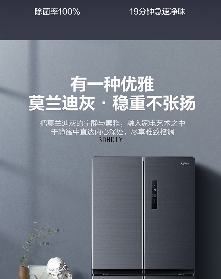商品名称:【S】【美的电冰箱 】446升 智能十字冰箱 19分钟急速净味 一级双变频无霜 莫兰迪灰