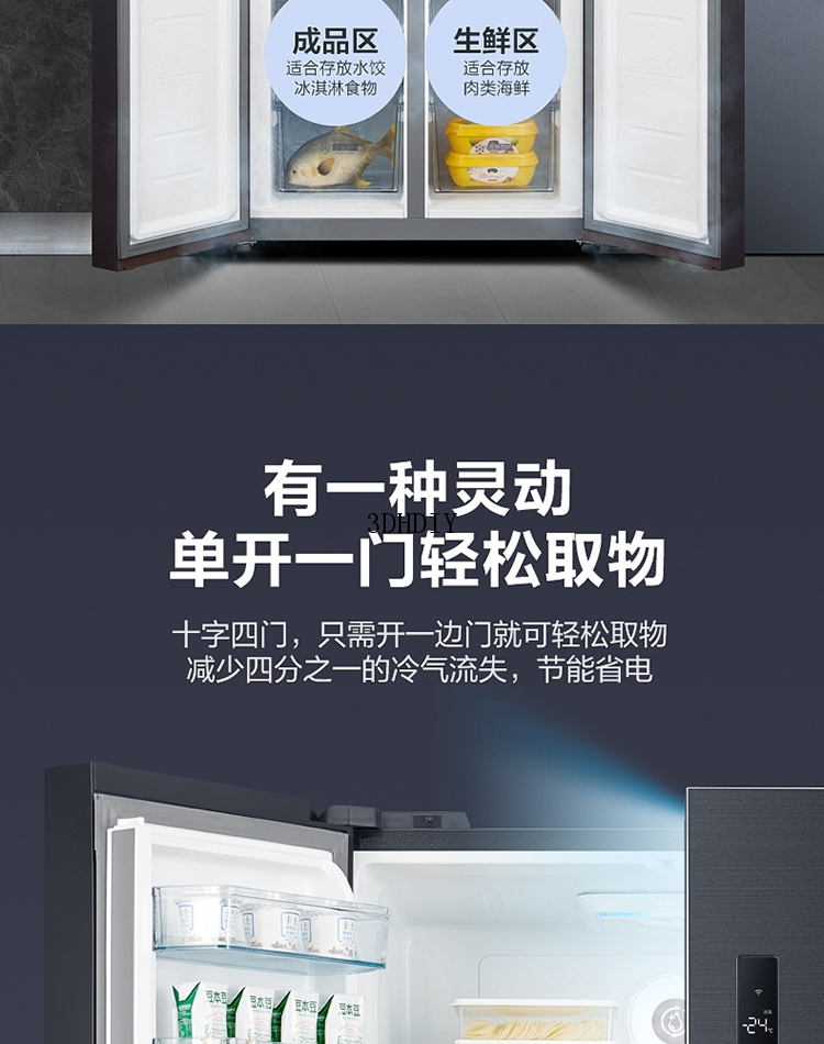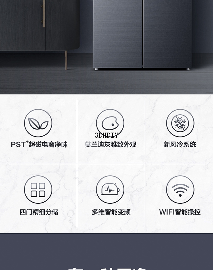 铂金净味;强效电离,净味除菌;北欧风格,磨砂观感;科技锁鲜;精细划分储藏区