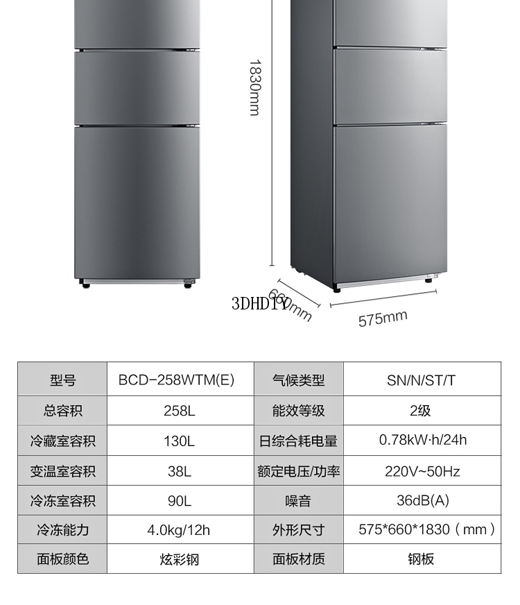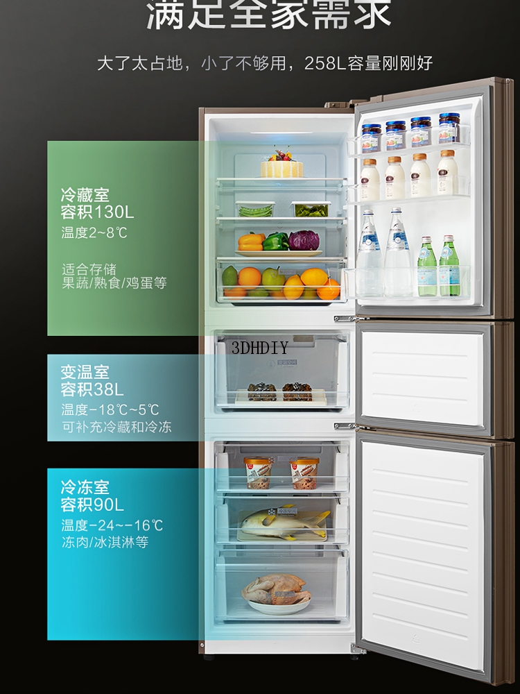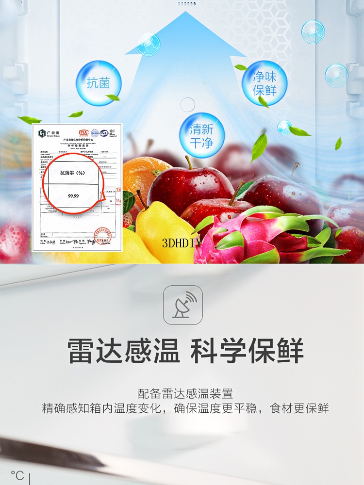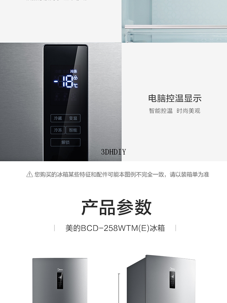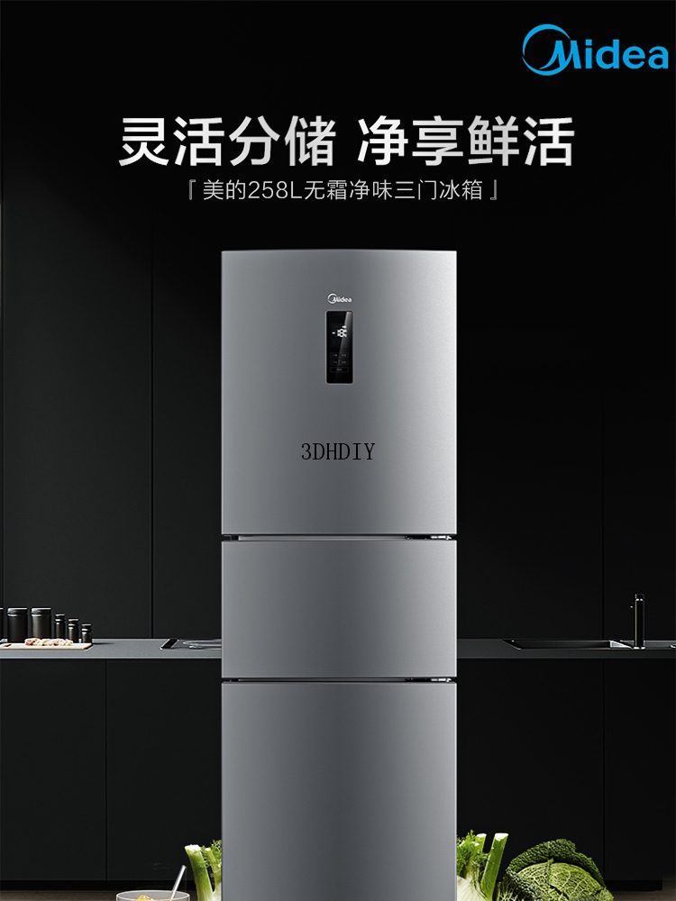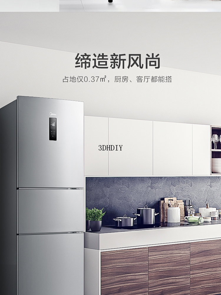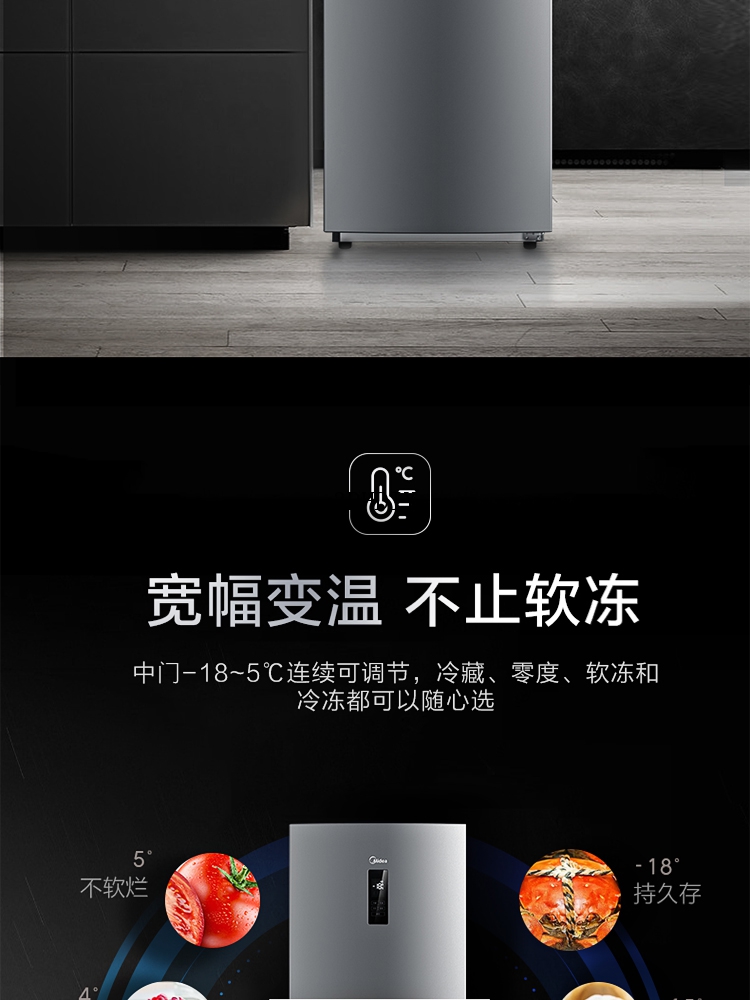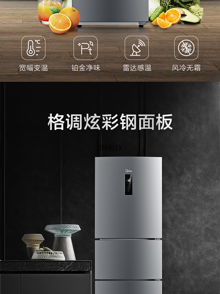 商品名称:【S】【Midea/美的电冰箱 银】风冷无霜 电脑控温 中门24档调温三门冰箱速冷速冻 节能 炫彩钢