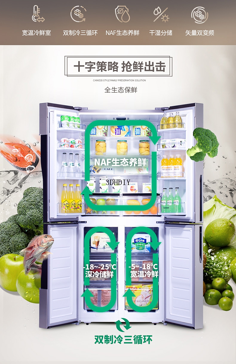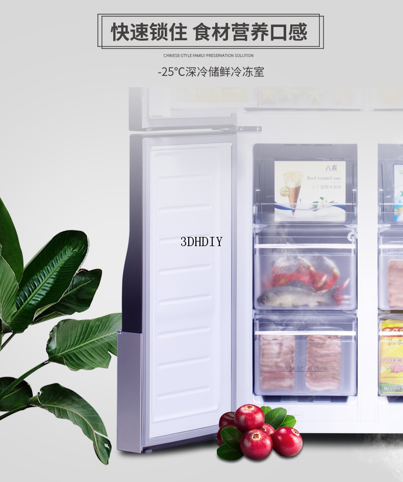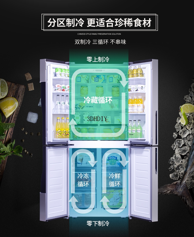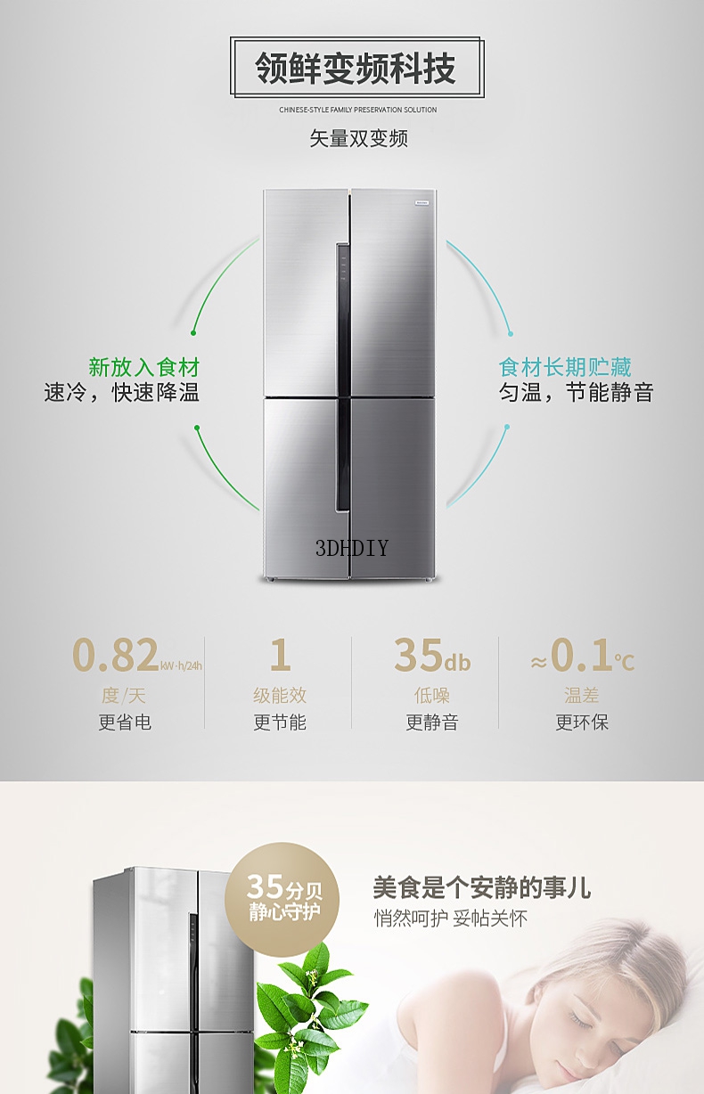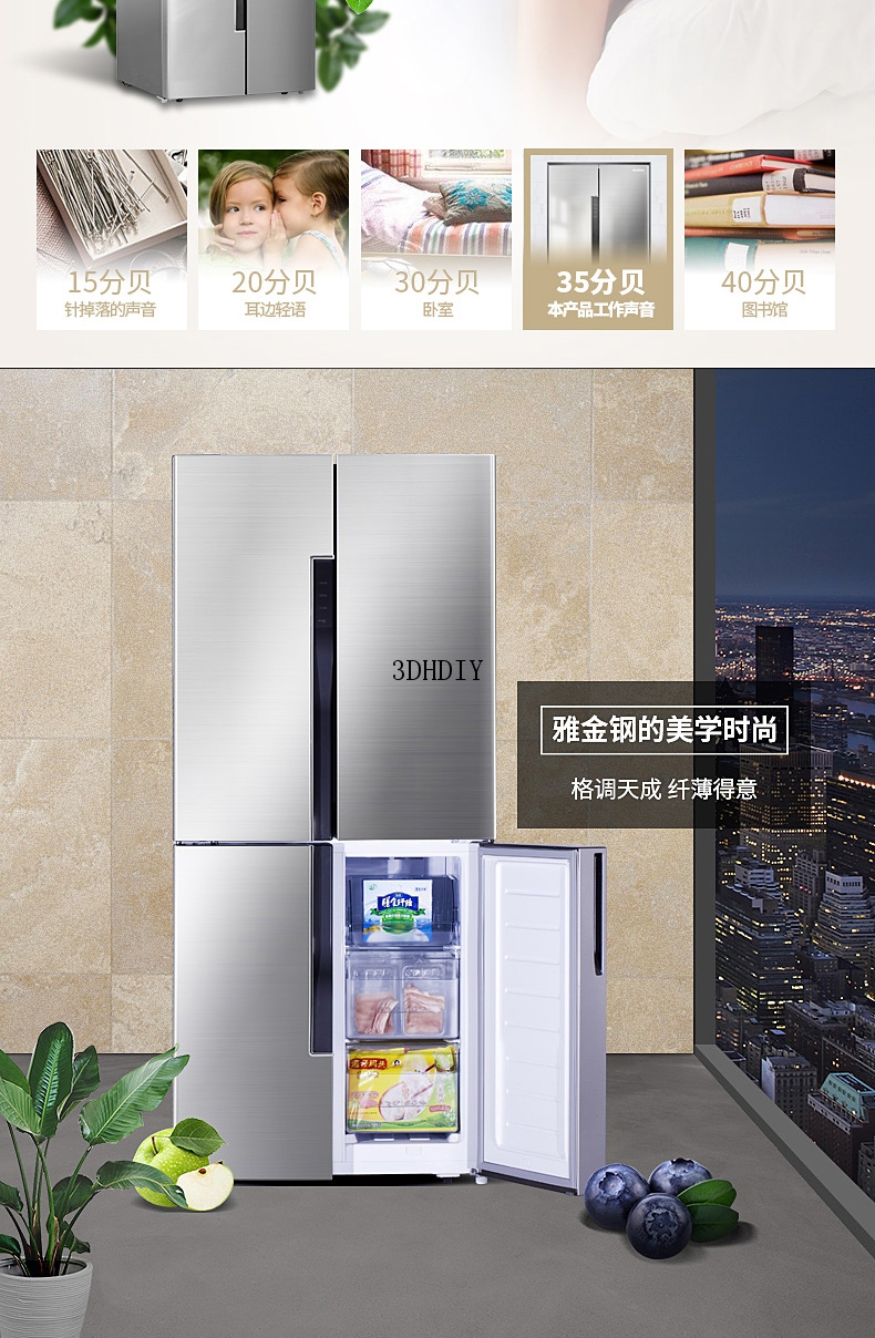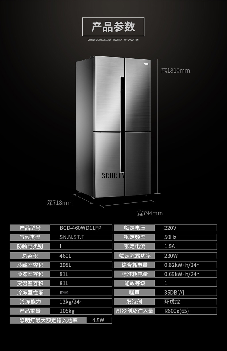 商品名称:Ronshen/容声冰箱 十字对开门冰箱 四开门冰箱一级变频