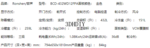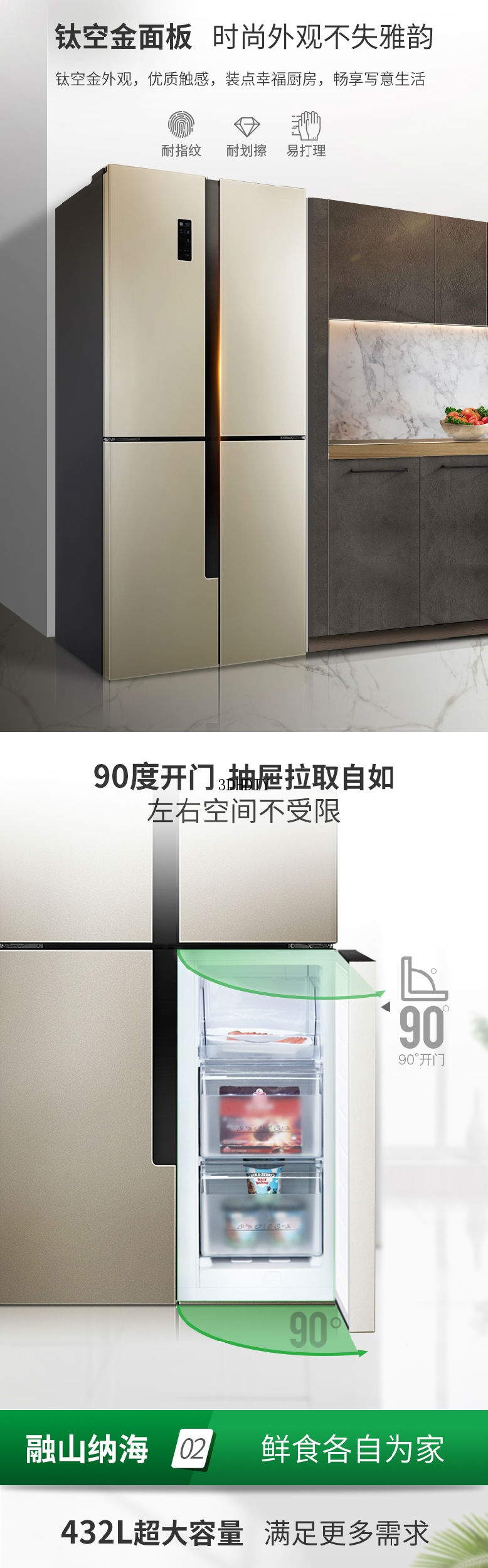 商品名称:Ronshen/容声 十字四门对开冰箱家用变频风冷超薄
